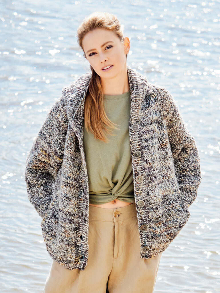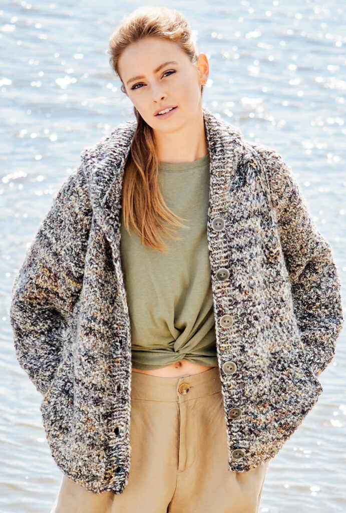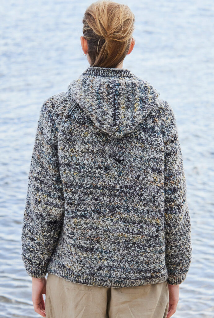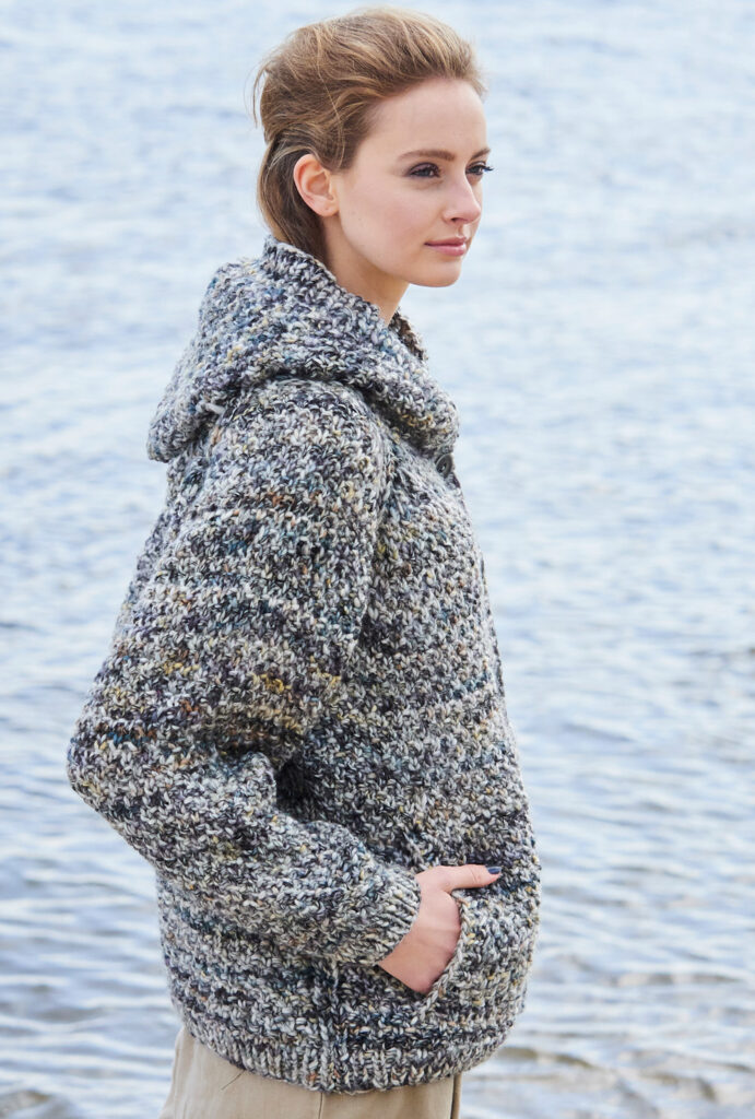 Die Anleitung für diesen Pullover ist in den Größen36 (38/40) und 42verfügbar.