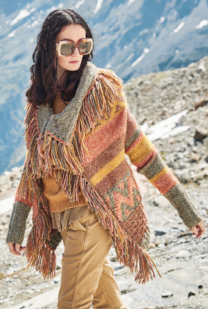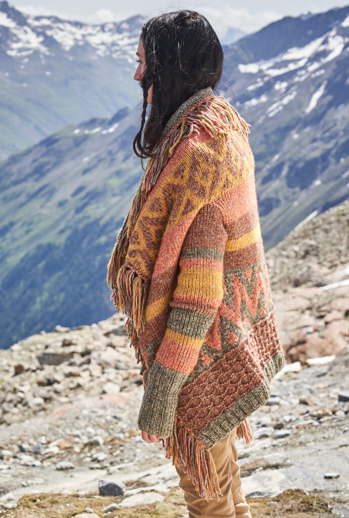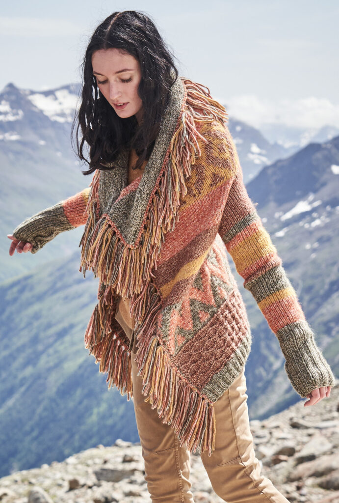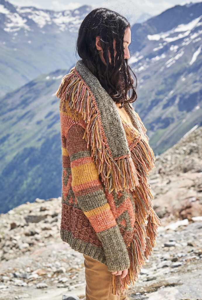 Verena Stricktrends Fransenjacke mit warmer Farb-Atmosphäre aus Verena Stricktrends