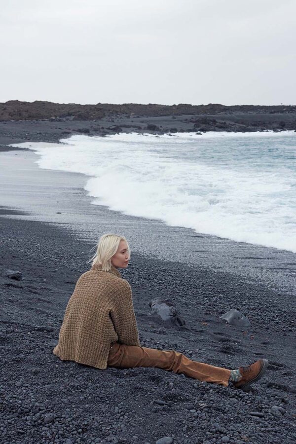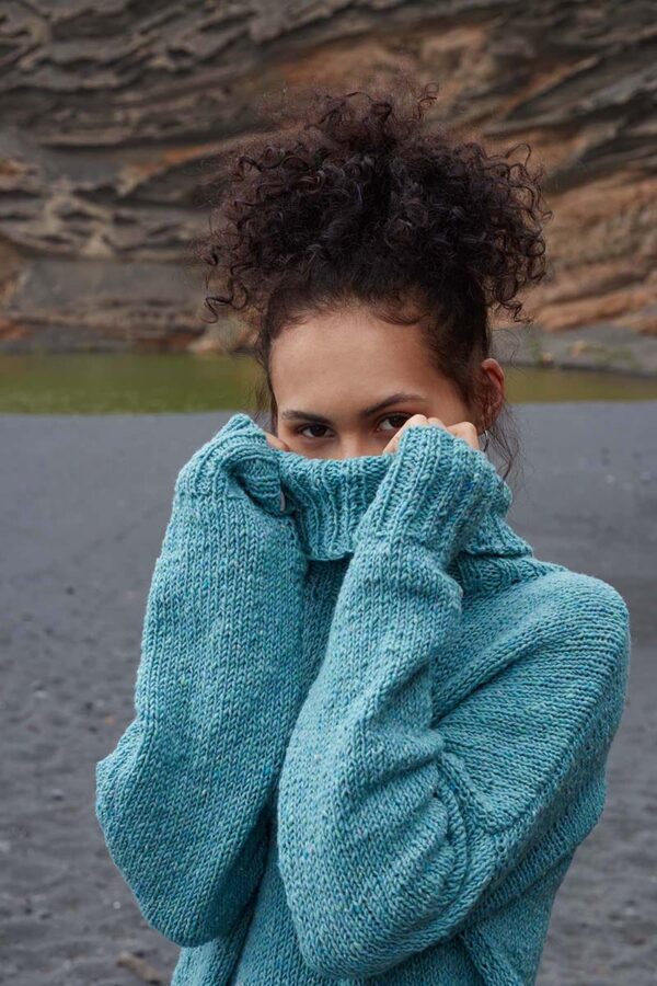 Bei diesem lässigen Pullover steht das Drüberziehen und Wohlfühlen im Vordergrund. Und natürlich das gleichmäßige Wechselspiel aus glatter Alpaka-Schurwolle und leicht plüschigem Teddygarn. Das bringt Spannung in die Optik und ist mit einfachen Kraus-Rechts- und Perlmusterstreifen auch von Anfängerinnen zu bewältigen. So wächst der Pulli Stück für Stück in edlen Beige-, Anthtrazit- und Kupfernuancen und wir zum Schluss mit einem hohen Rollkragen vervollständigt. Bei ihn und auch bei den Bündchen kommen zwecks der Stabilität elastische Rippenstrukturen und dünnere Nadeln ins Maschenspiel.