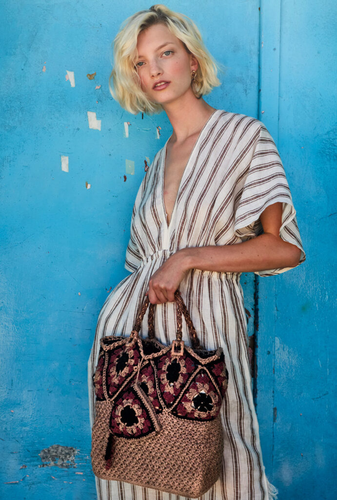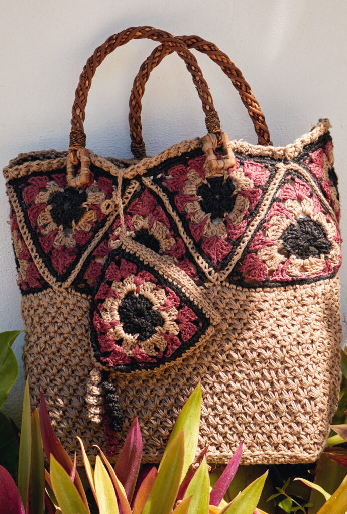 Sieht aus wie Bast, besteht aber aus Hanf und ist somit bedeutend strapazierfähiger: Die Tasche mit Häkel-Dreiecken sieht zu sommerlichen Outfits einfach umwerfend aus und bietet jede Menge Stauraum für alles, was Frau so braucht. Gehäkelt wird stets entweder drei- oder zweifädig. Erst der Taschenboden, dann die Dreiecke und die Seitenwände. Zwei kleine Dreiecke bilden dann noch das praktische kleine Täschchen, dass am Griff extra befestigt wird. Alle Taschen werden dann von innen mit Holzleim bestrichen – so erhalten sie mehr Stand. Sowohl das Sternchenmuster, als auch das Häkeln der Tasche sind in der Anleitung detailliert Reihe für Reihe beschrieben. Für die Dreiecke gibt es eine übersichtliche, farbige Häkelschrift.