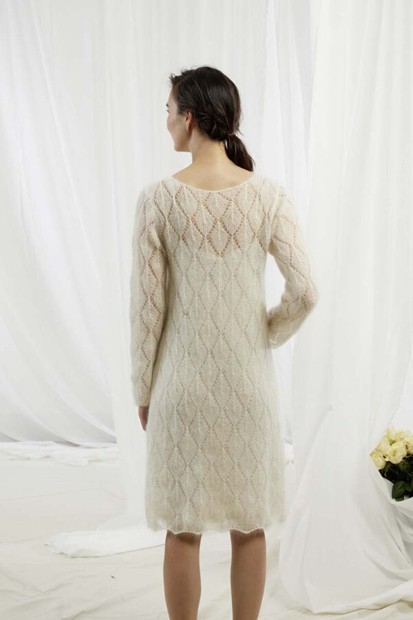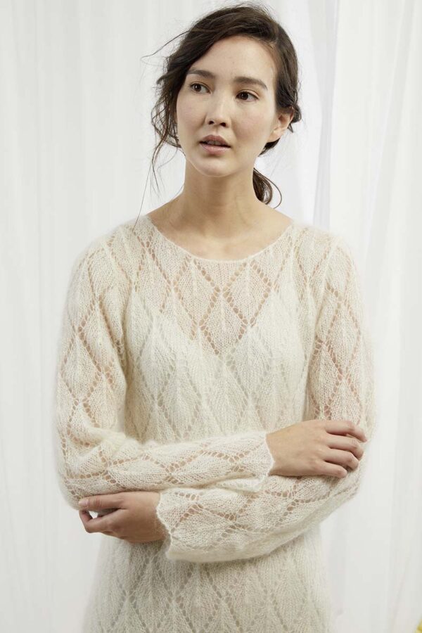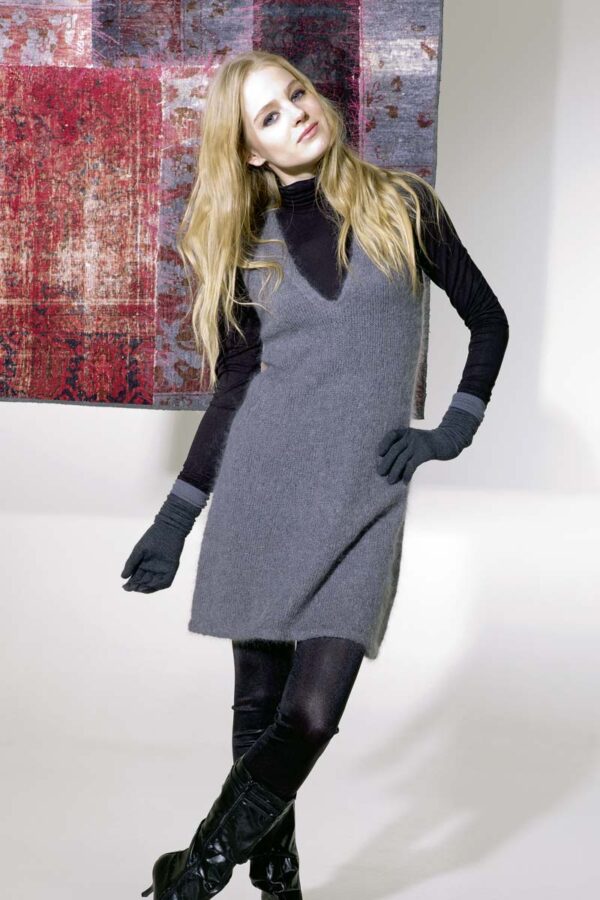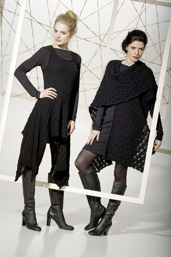 Dieses figurbetonte, ärmellose Minikleid aus einem angenehm auf der Haut liegenden reinen Baumwollgarn in drei Farben macht Lust auf den Sommer. Es ist nicht nur luftig, sondern dank der fünf verschiedenen Muster in den breiten Blockstreifen auch abwechslungsreich zu stricken. Blatt-, Rauten-, Flecht- und Ajourmuster werden jeweils mit ein paar Reihen kraus rechts getrennt. Der Halsausschnitt und die Armausschnitte bekommen zum Schluss einen I-Cord-Rand. Eine Anleitung gibt es hierfür für die Größen 34/36 und 38/40 sowie 42/44.