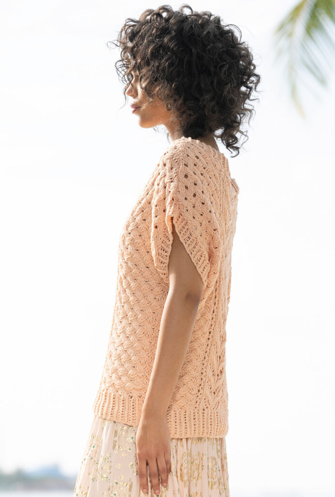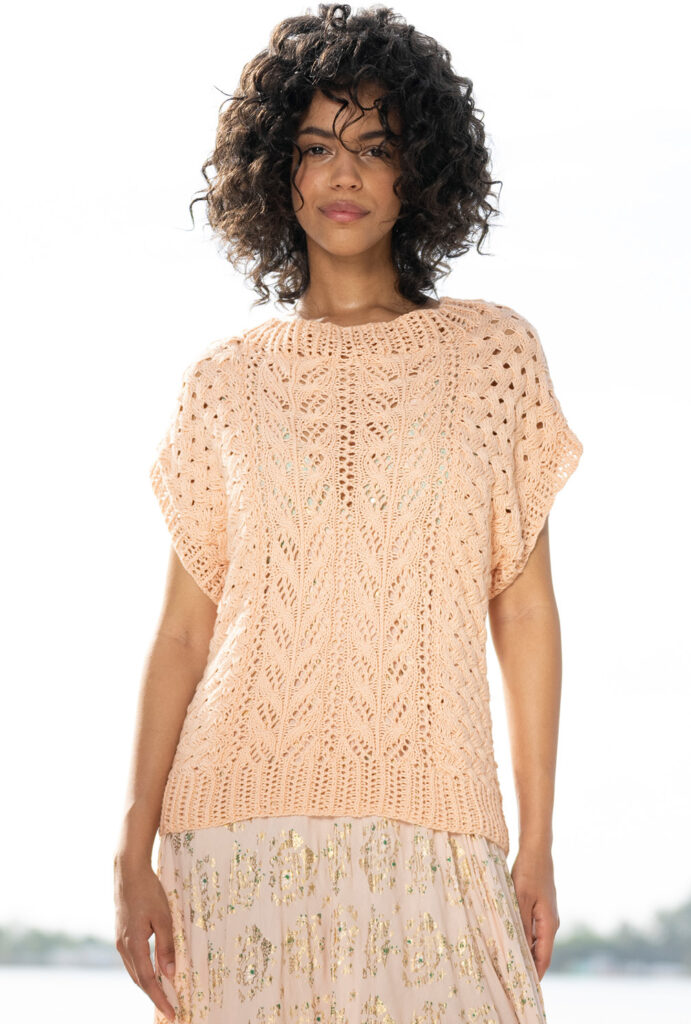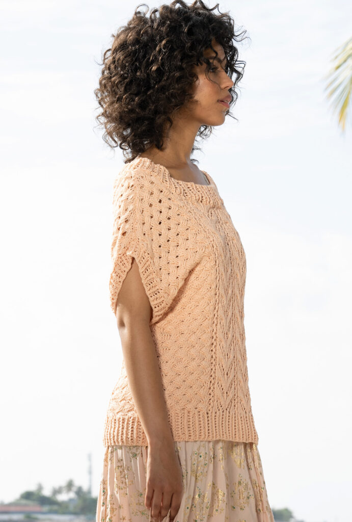 Wer Vielfalt in seine Sommergarderobe bringen möchte, dabei aber modisch up to date sein will, der liegt mit diesem aparten Oberteil genau richtig. Denn es ist wandelbar. Bei heißen Temperaturen kann es durch das softe Baumwollgarn direkt auf der Haut getragen werden, die verschiedenen Ajourmuster wirken zusätzlich luftig und der lässige Schnitt ausgesprochen komfortabel. An kühleren Tagen trägst Du einfach eine Bluse oder ein langärmeliges Shirt darunter und hast ruck zuck einen modischen Pullunder, der Blicke auf sich zieht.