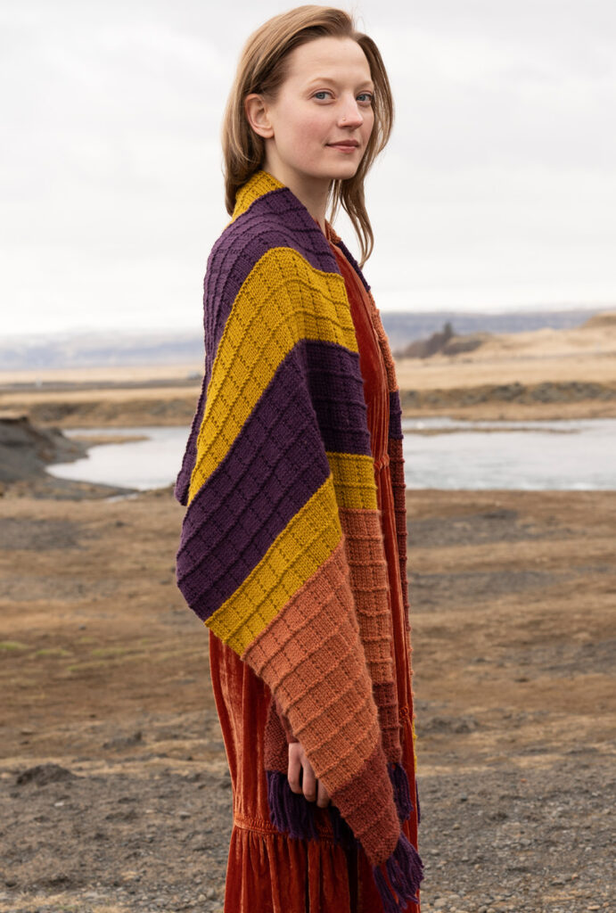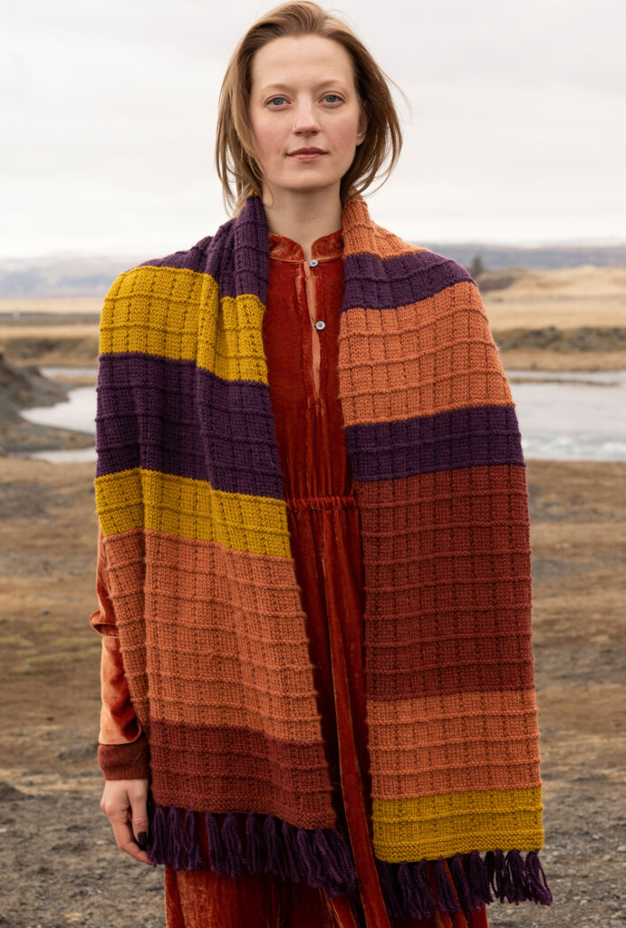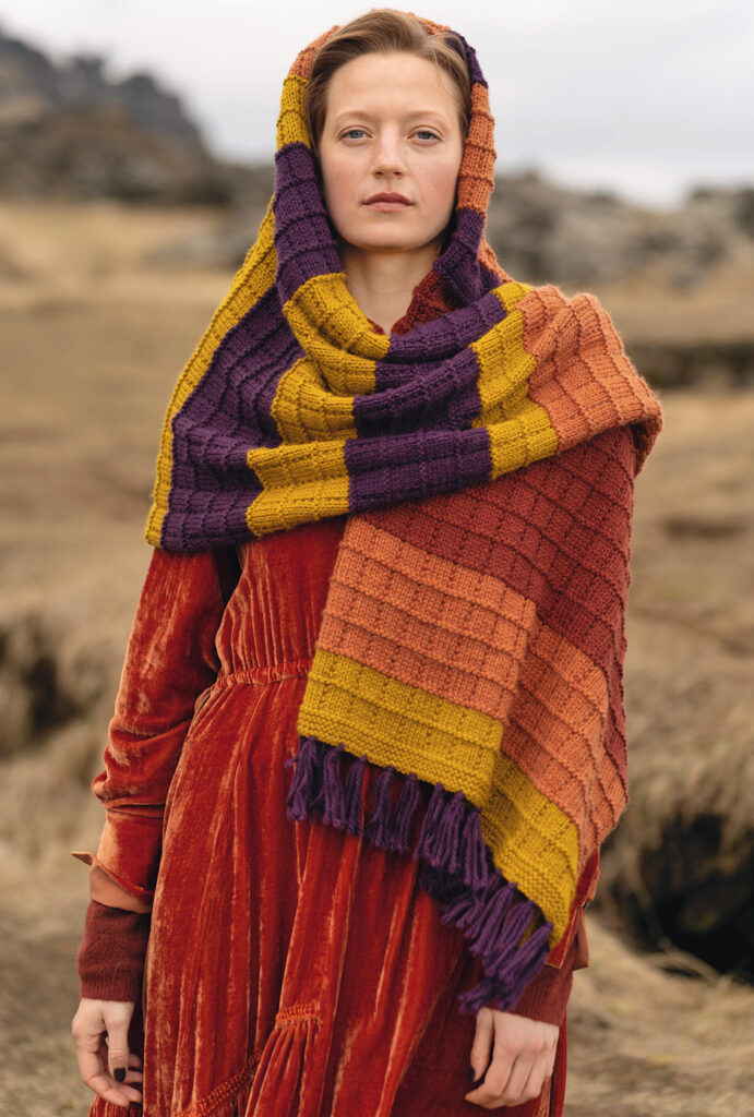 Accessoires wie Mützen oder Tücher sind unverzichtbare Begleiter für die Übergangszeit. Hier ein toller Schal, der Kopf, Hals und Schultern warm umschmeichelt und schnell zu deinem Lieblingsstück avancieren wird. Aus weichem Schurwoll-Alpakagarn gestrickt, kommen hier auch AnfängerInnen zum Ziel, da sich das aparte Kästchenmuster nur aus rechten und linken Maschen zusammensetzt. Streifenweise die Farben wechseln erhöht die Spannung beim Stricken, eingeknüpfte Fransen an den Schmalseiten bilden das Finish.