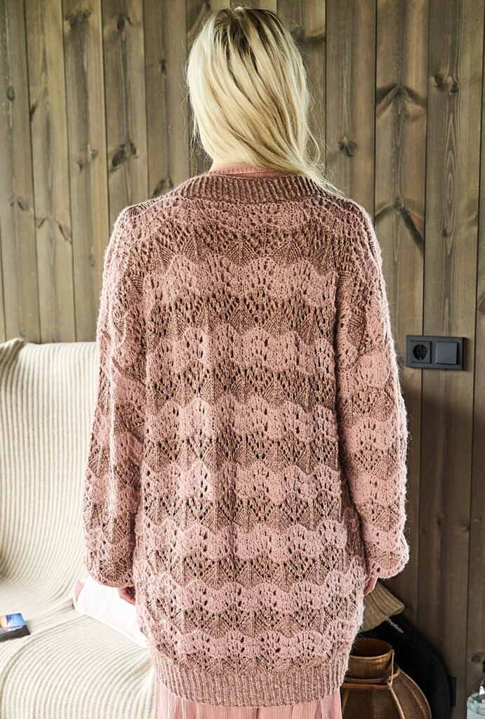 Gönnen Sie sich eine Pause! Mit dieser locker fallenden Strickjacke, deren behaglicher Komfort durch den kuschelweichen Mix aus zwei unterschiedlichen Edelgarnen entsteht. Für das gestreifte Wellenmuster in sanften Rosétönen gibt es eine übersichtliche Strickschrift, durch die du mit etwas Übung ganz schnell vorankommst. Schmale Rippenblenden und farblich passende Knöpfe runden das Bild gekonnt ab. Ein toller Begleiter, der dich bis weit in den Winter begeistern wird.