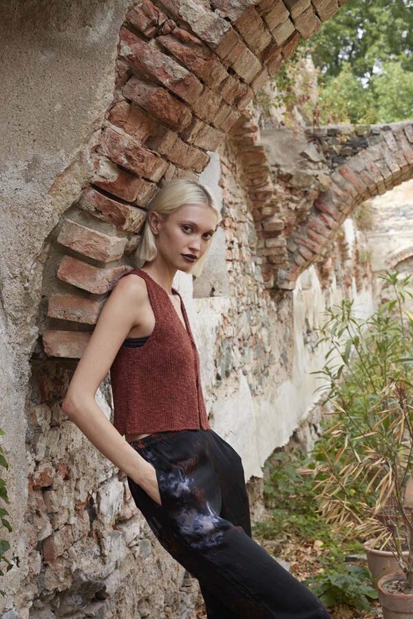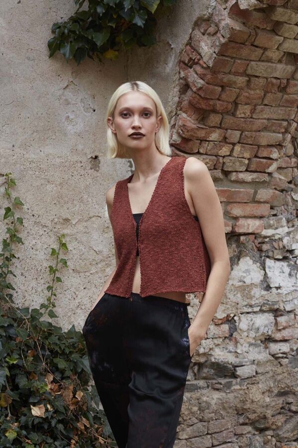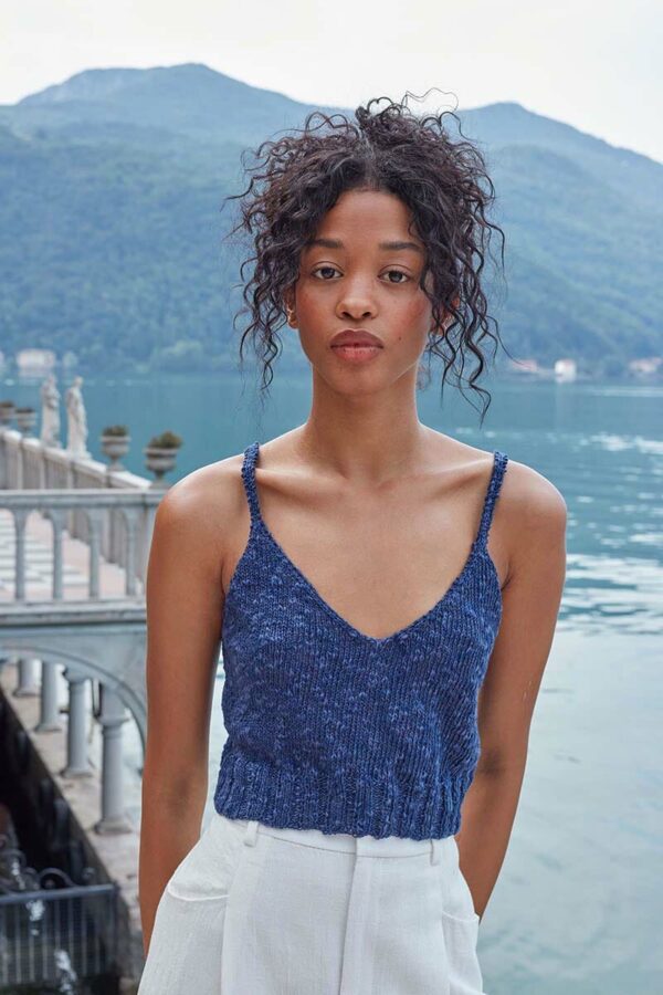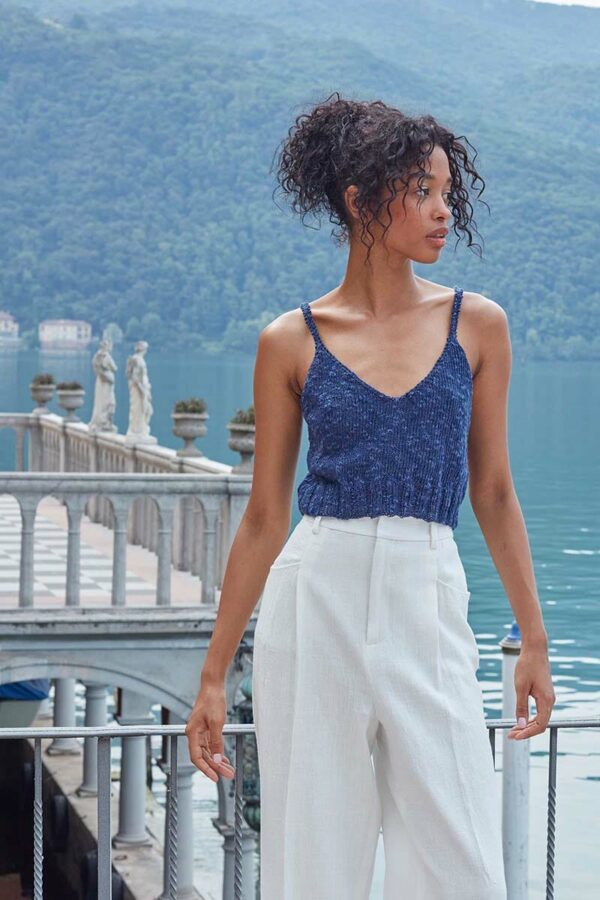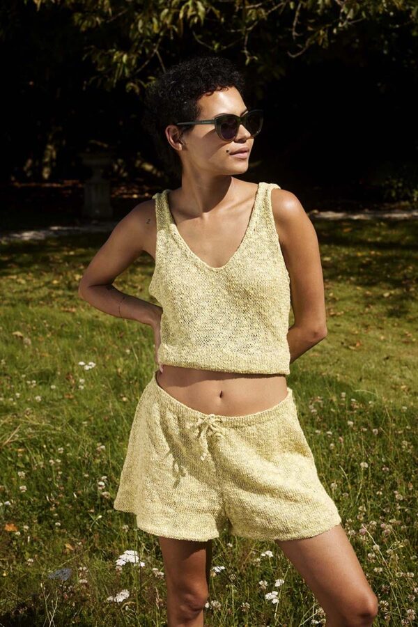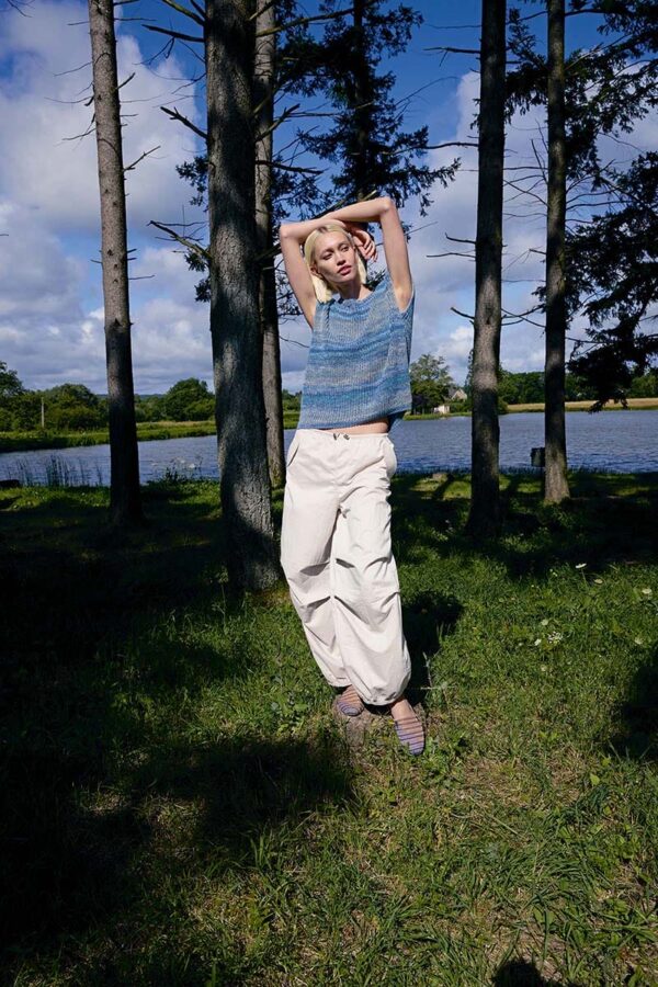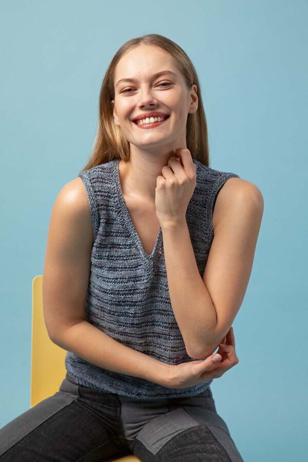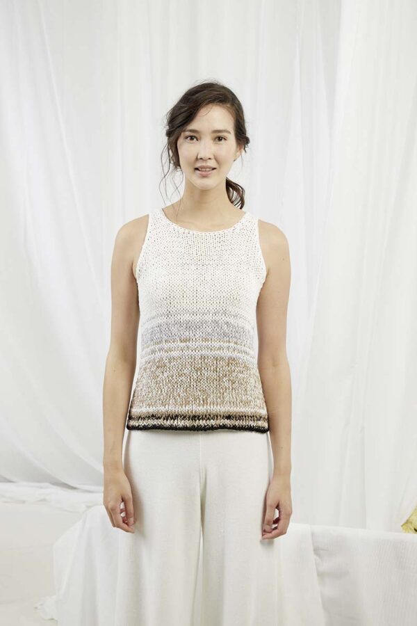 Der Metallic-Trend sticht in dieser Saison besonders hervor. Hier gibt es jetzt im Fachhandel jede Menge Glanzgarne oder Lurexfäden, mit denen sich tolle Effekte erzielen lassen. Bei dem gestreiften Top kommt edle Mohairseide zum Einsatz, die wir mit Lamé-Beilaufgarn auf Hochglanz gebracht haben. Die Jacke mit Bindeband begeistert durch feines Flauschgarn, bei dem die Glitzereffekte bereits eingewoben sind und das wir einfach glatt rechts und im Schulterbereich sowie an den Ärmeln in Rippenstrukturen verstrickt haben. Alle Garne werden zweifädig verarbeitet, das gibt Stabilität und geht auch schneller von der Nadel.