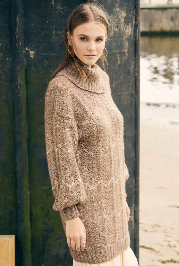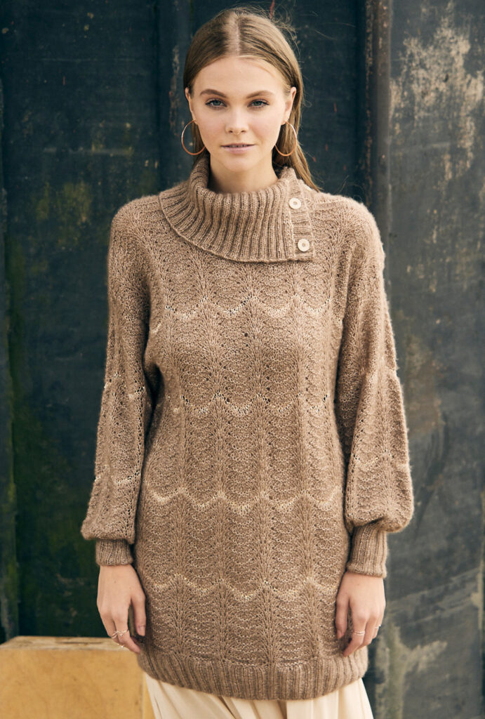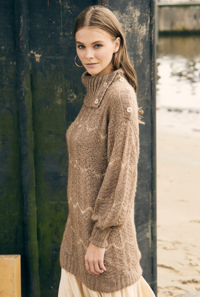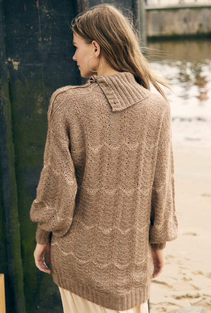 Jetzt wird es Luxuriös! Zartes Kaschmirgarn trifft auch glitzernden Pailletteneffekt. Das ganze verpackt in einem legeren gerade Schnitt, der einfach lässig fällt. Der Schalkragen mit Knopfleiste sorgt für zusätzliche Eleganz. Er wird später angestrickt, nachdem alle anderen Teile einzeln von unten nach oben gearbeitet wurden. Das Wellenmuster ist gar nicht schwer zu lernen und du hast es sicherlich ganz schnell im Kopf. Die Anleitung mit detaillierter Strickschrift, genauem Schnitt und ausführlicher Beschreibung aller Arbeitsschritte hilft dir auf jeden Fall bei einer erfolgreichen Umsetzung. Gestrickt wird mit verschiedenen Nadelstärken in Größe 38/40 oder 44/46.