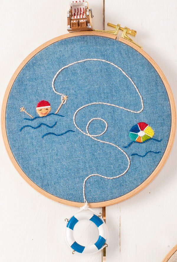 Stickbilder und Matchsack mit Meeresmotiven und Reiseerinnerungen