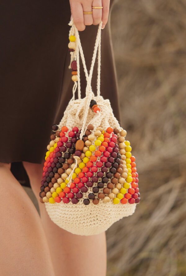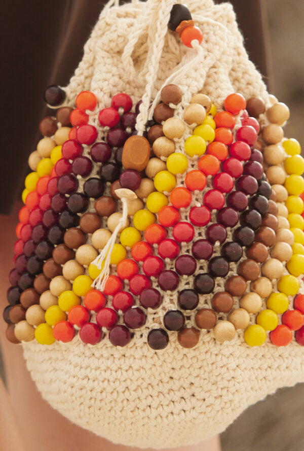 Beutel mit bunten Holzperlen