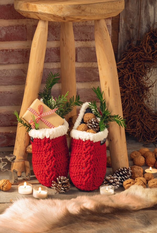Gehäkelte rot-weiße Weihnachts-Botties