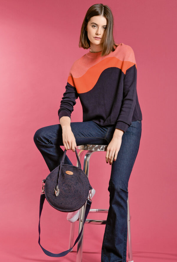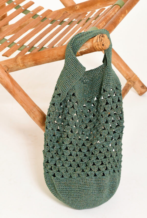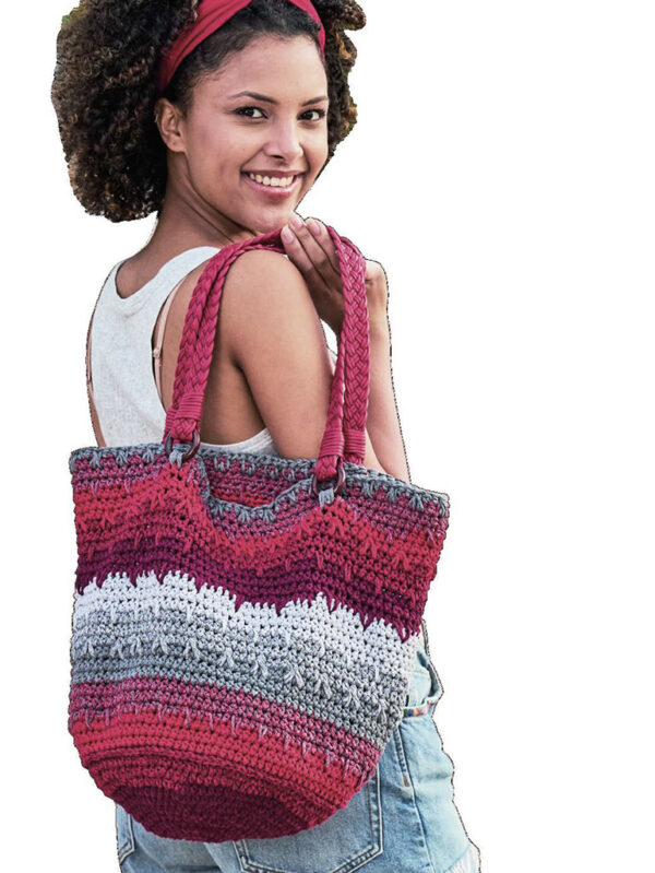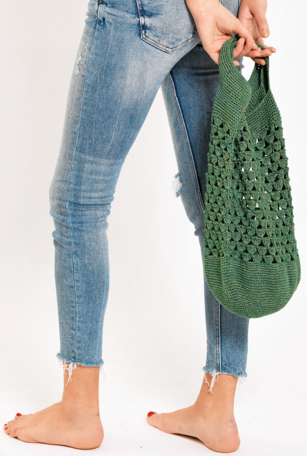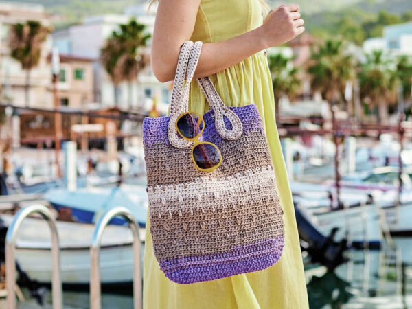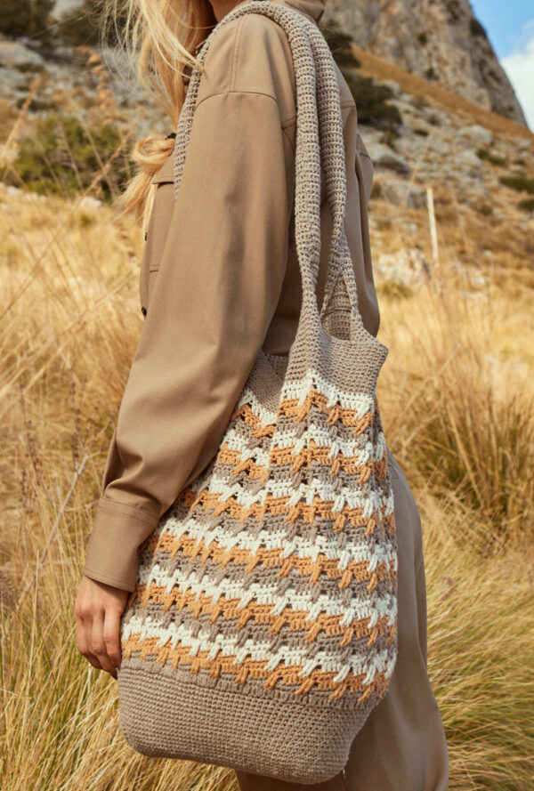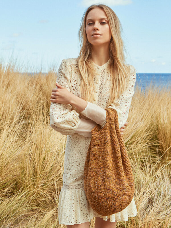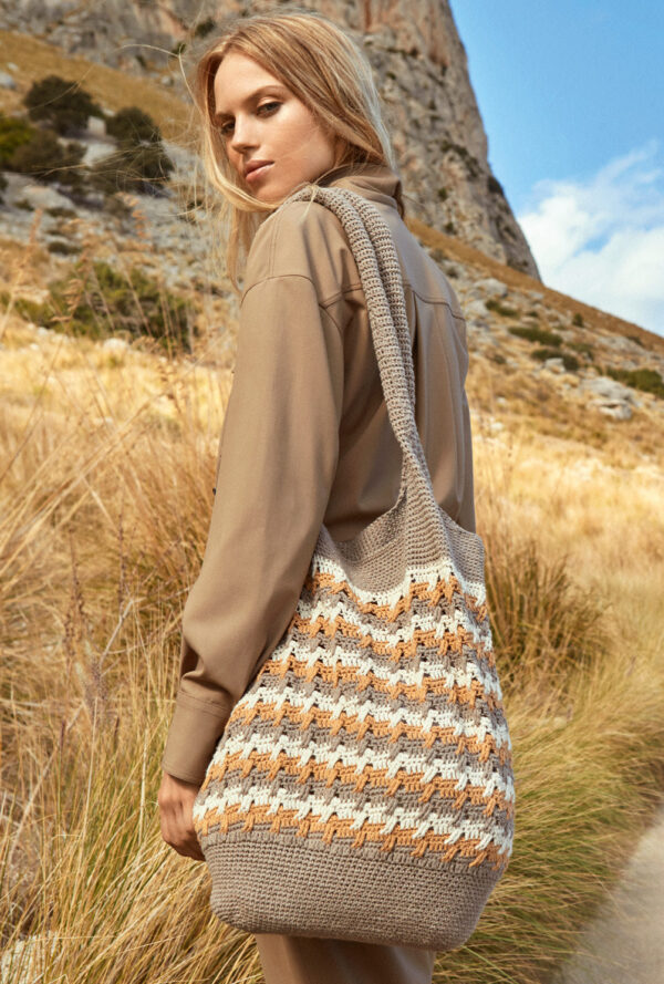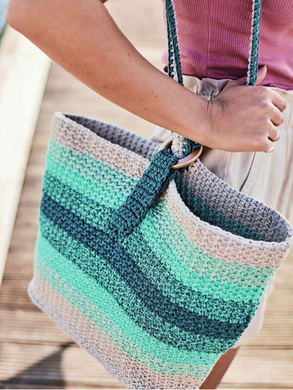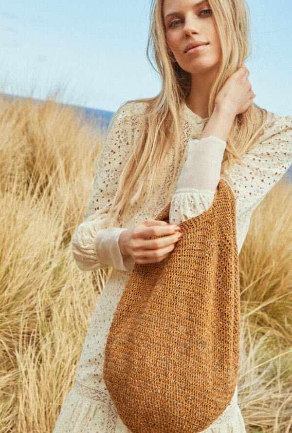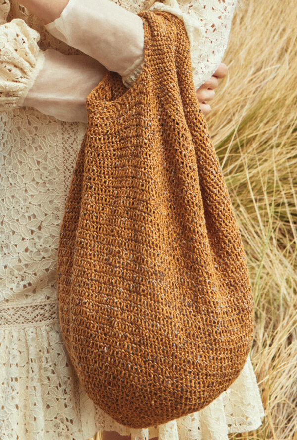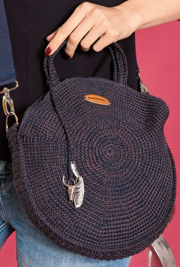 Rund und praktisch: In festen Maschen gehäkelte Tasche mit Schultergurt.