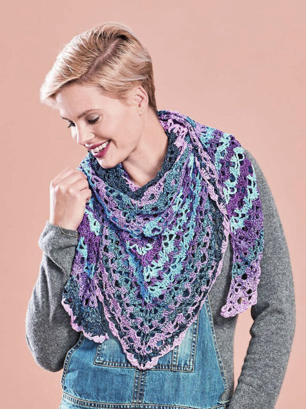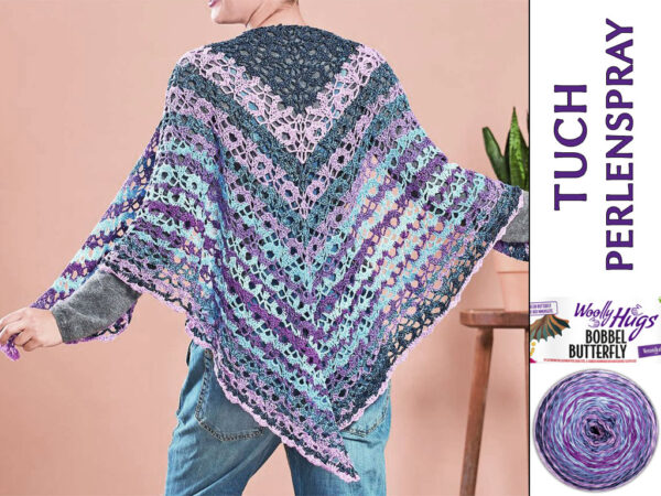 Woolly Hugs Bobbel-Tuch gehäkelt, in den Farben Lavendel, Flieder und Blau