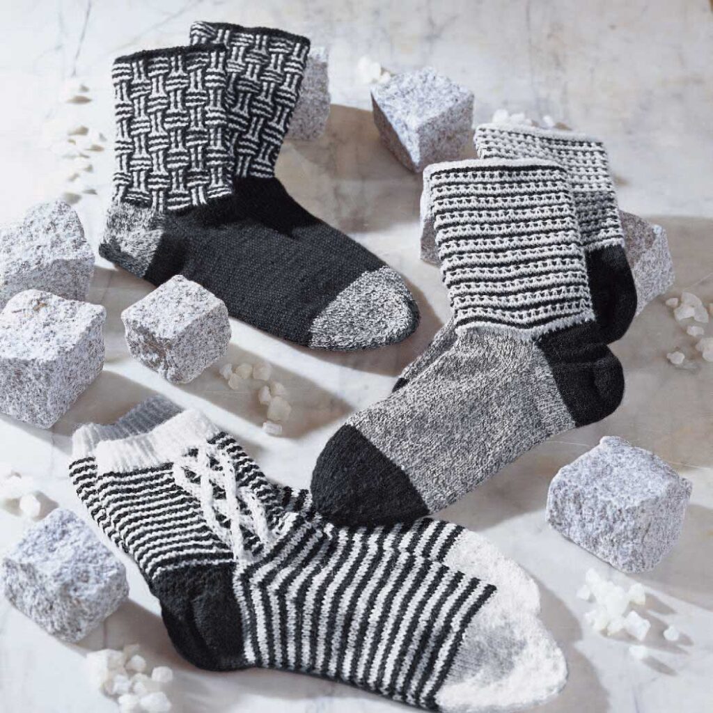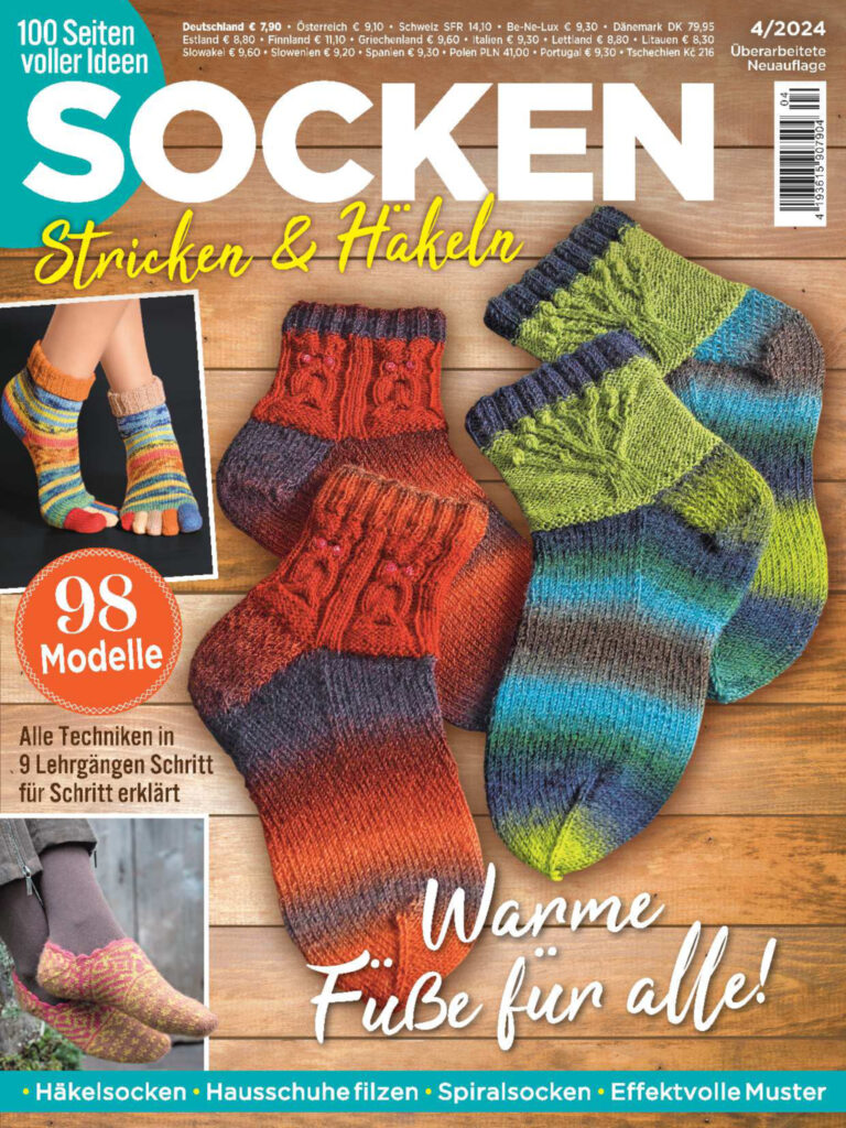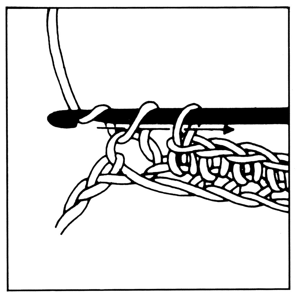 Stäbchen: *Einen Umschlag aufnehmen, Schlinge durch die nächste Einstichstelle holen und mit 1 Umschlag 2 Schlinge abmaschen. Ab * für jedes folgende Stb wdh. Zuletzt mit 1 Umschlag alle Schlingen auf der Nadel zusammen abmaschen. Bei Doppel- und Mehrfachstäbchen jedes Stäbchen bis auf die letzten beiden Schlingen abmaschen und mit dem letzten Umschlag alle auf der Nadel liegenden Schlingen zusammen abmaschen.