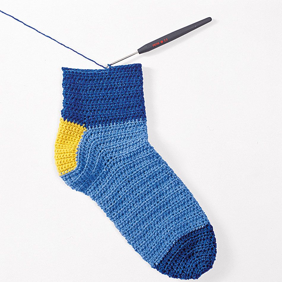 Gestrickte Socken kennt jeder. Dass man Socken aber auch ganz einfach häkeln kann, wissen die wenigsten. Wir zeigen euch in 4 einfachen Schritten, wir ihr ganz einfach Socken selber häkeln könnt. Dank der farbigen Häkelschriften am Ende des Beitrags könnt ihr auch ganz übersichtlich nachschauen, wie die Maschen liegen müssen.