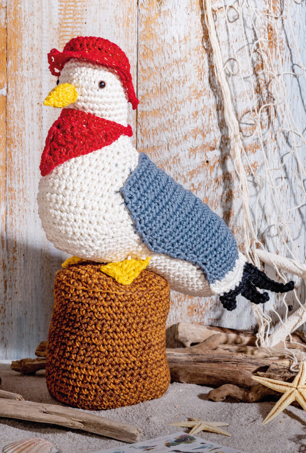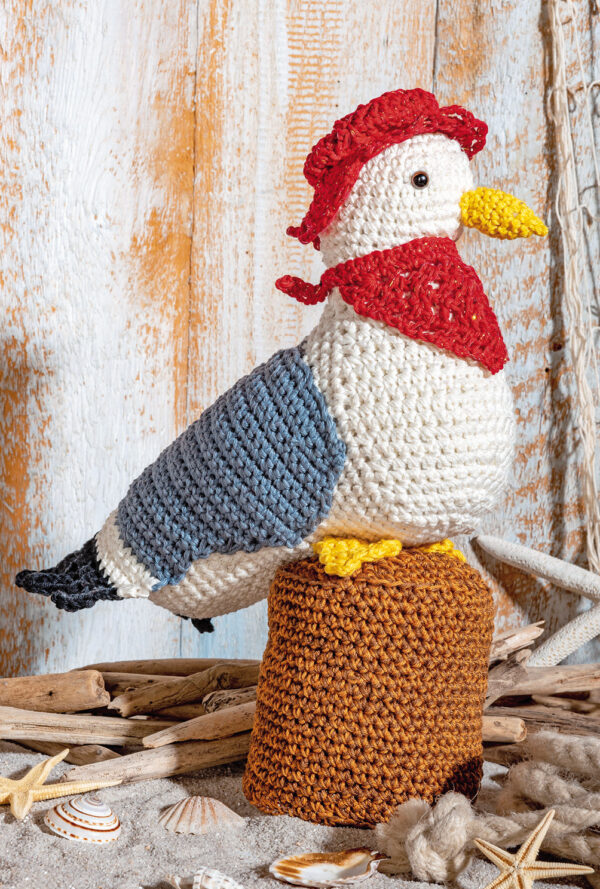 Gehäkelte Möwenpaar im sommerlichen Outfit