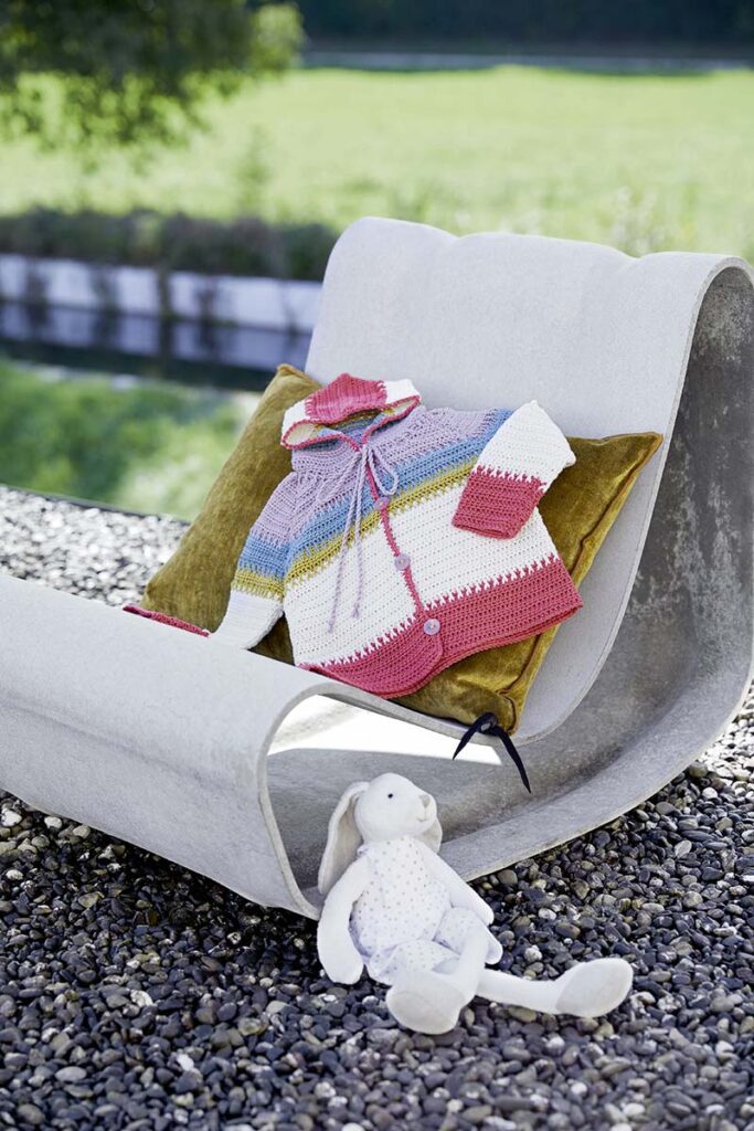 Strickanleitung in den Sprachen DE, FR, NL, EN.