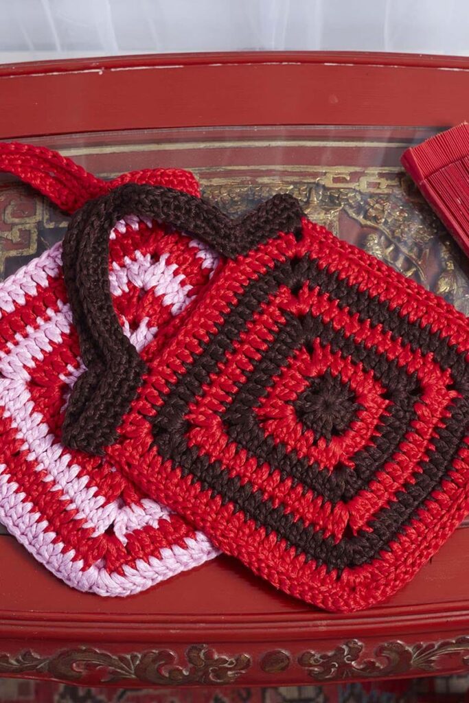 These little bags are perfect for putting little projects in. You can use them very easily as a project bag and the handle is large enough to slip it over your wrist. It looks like a sweet little pastry.