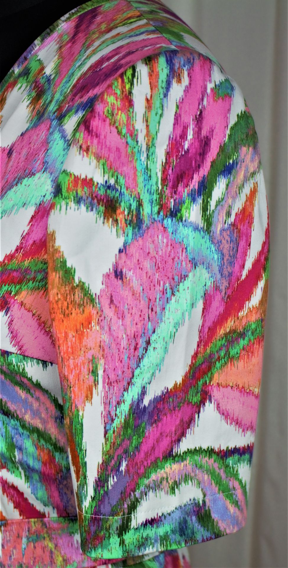 Der Zuschneideplan für das Kleid ist nur für einen Stoff mit einem Stretchanteil gedacht! Wenn du einen anderen Stoff aussuchst, sollte er auch elastisch sein. Bei einem unelastischen Stoff müssen die Streifen für den Halsausschnitt im schrägen Fadenlauf zugeschnitten werden. Dann bitte 60 cm mehr Verbrauch rechnen!