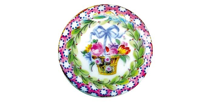 Mit feinen Pinselstrichen bemalter Porzellanknopf