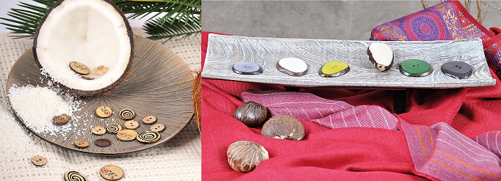 Knöpfe aus Kokosschalen (links) | Steinnussknöpfe (rechts)