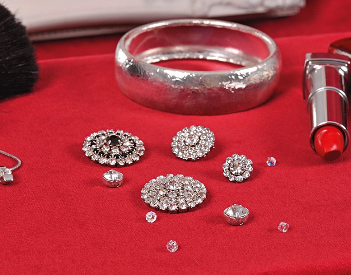 Seit jeher sind Knöpfe aus Glas oder mit Glaseinlagen beliebt. Kein Wunder, sehen sie doch aus wie kleine Edelsteine. Der aus Bleiglas gefertigte Strass (auch Straß oder Stras geschrieben) wurde schon im 18. Jahrhundert verwendet, um Diamanten zu imitieren. Knöpfe aus diesem Material bestechen auch heute noch durch ihren funkelnden Glanz.