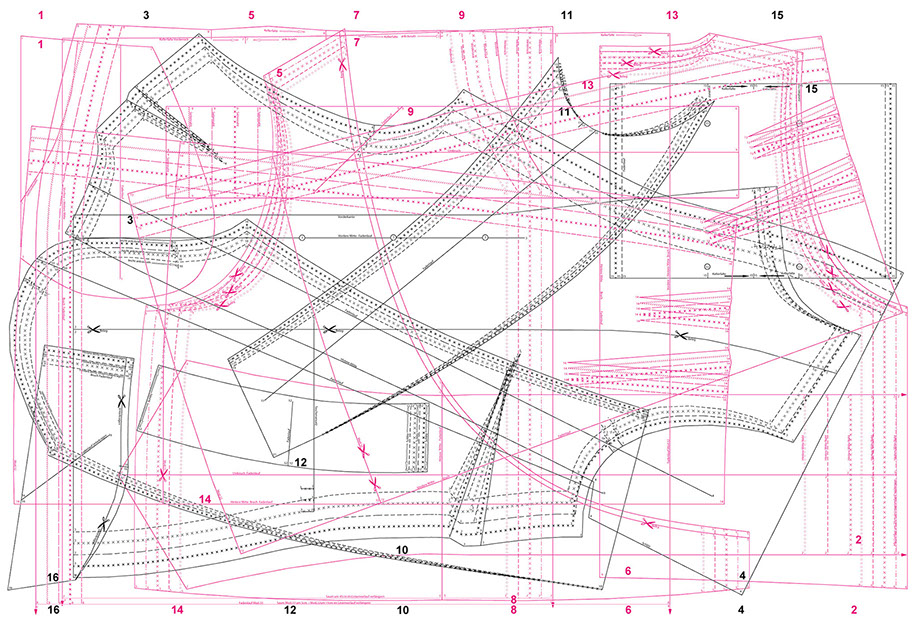 Große Schnittteile, wie z.B. das Rückenteil eines langen Mantels finden nicht im Ganzen auf dem Bogen Platz. Sie werden entweder in mehreren Einzelteilen auf dem Bogen platziert ,welche später zusammengesetzt werden müssen, oder Sie müssen um ein angegebenes Maß im Linienverlauf verlängert werden.
