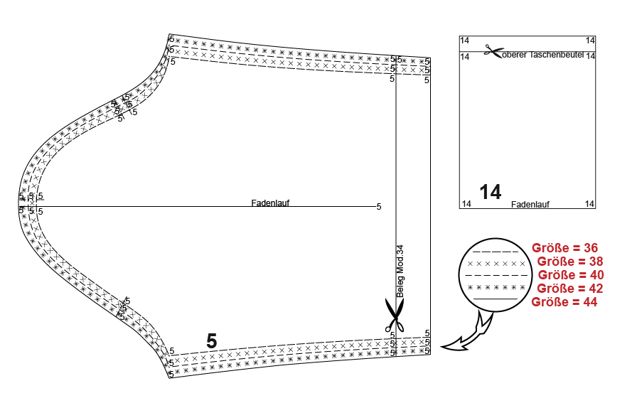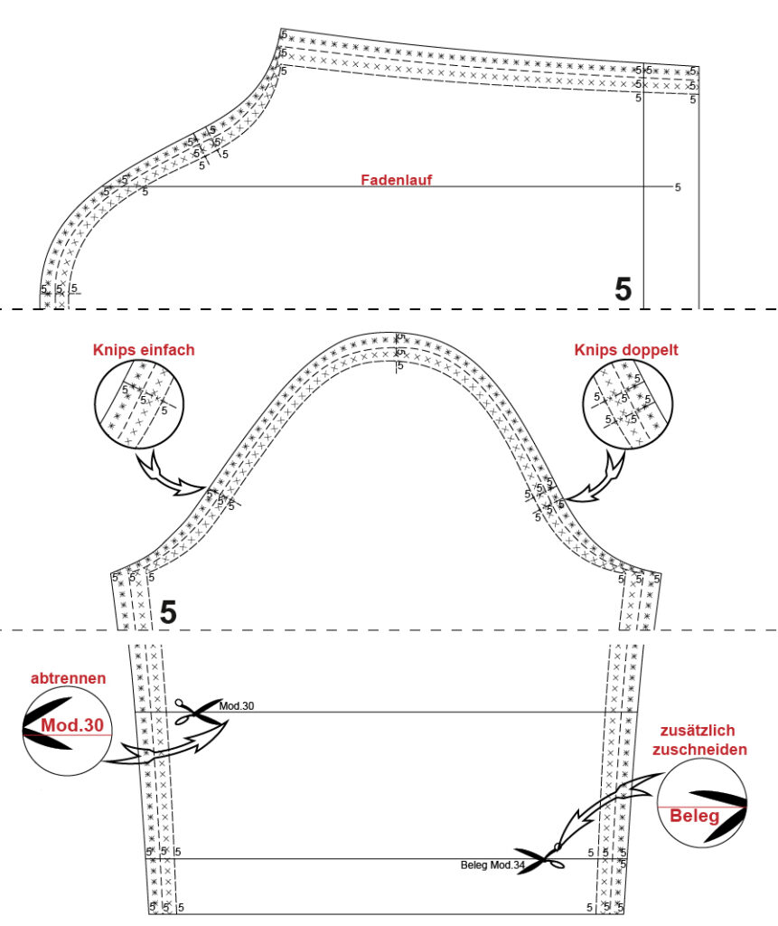 Nun geht es um die Schnitteile, die auf dem Schnittbogen abgebildet sind.