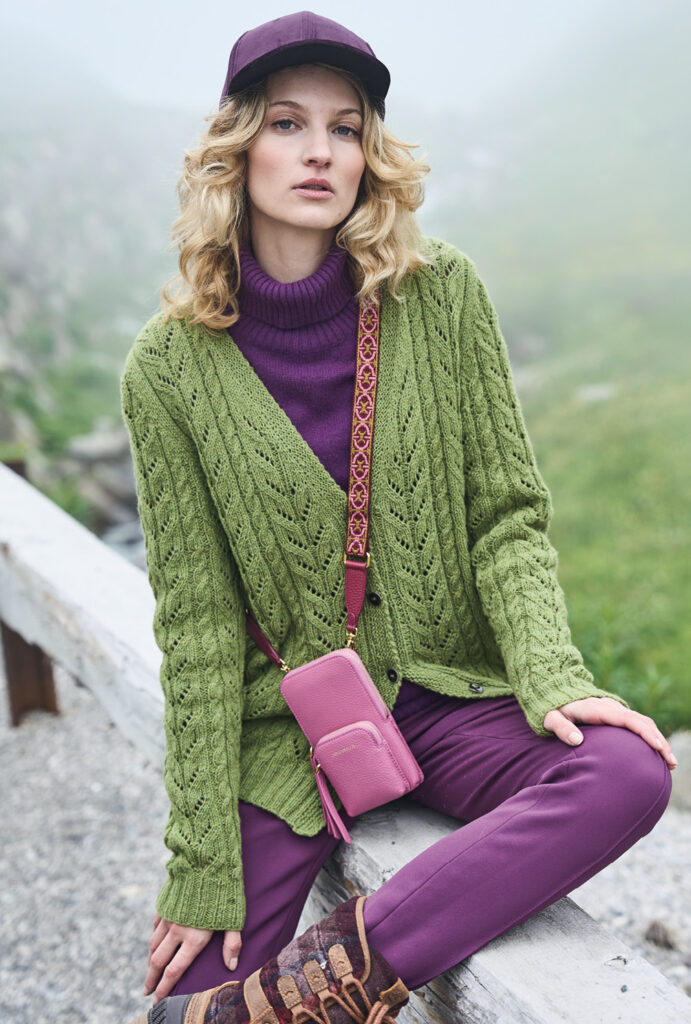 Klassisch, zu allem kombinierbar und ein «Für-Immer-Stück»: Dieser Cardigan mit Zöpfen und Ajourmuster-Streifen begleitet dich die ganze Saison und macht, durch sein heiteres Grün, auch im Frühling Furore. Das feine Garn besteht aus recycelten Kaschmirfasern und wird nachhaltig produziert – ein klares Statement für die Umwelt. Elastische Rippenbündchen, die perfekt ausgearbeitete V-Ausschnittschrägung und die angestrickte, mit farblich passenden Knöpfen versehene Kraus-rechts-Blende bilden das Finish.