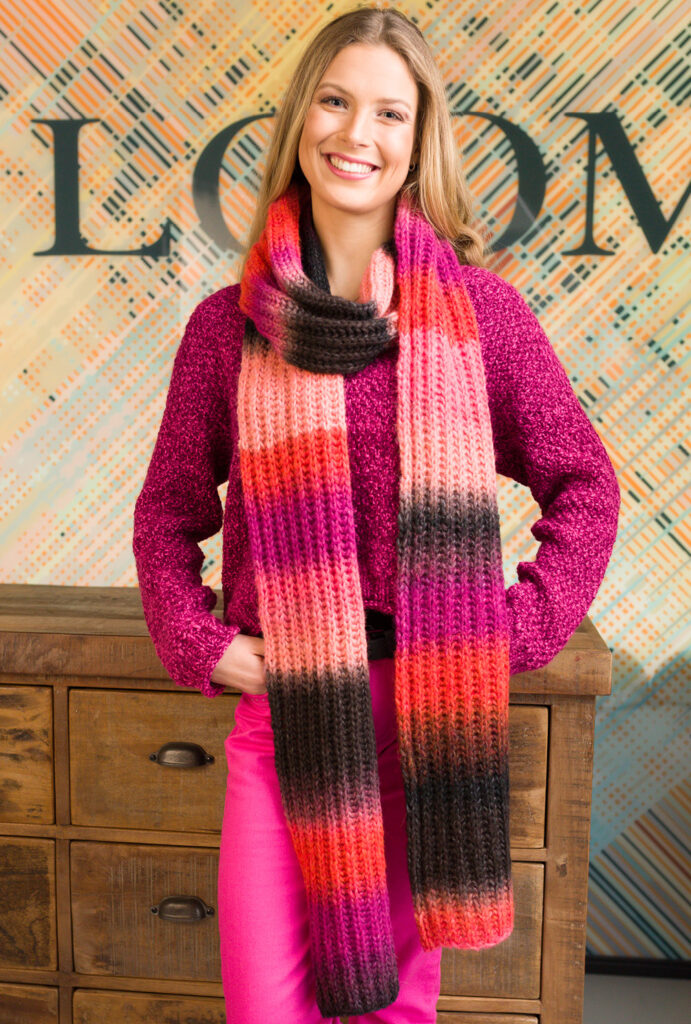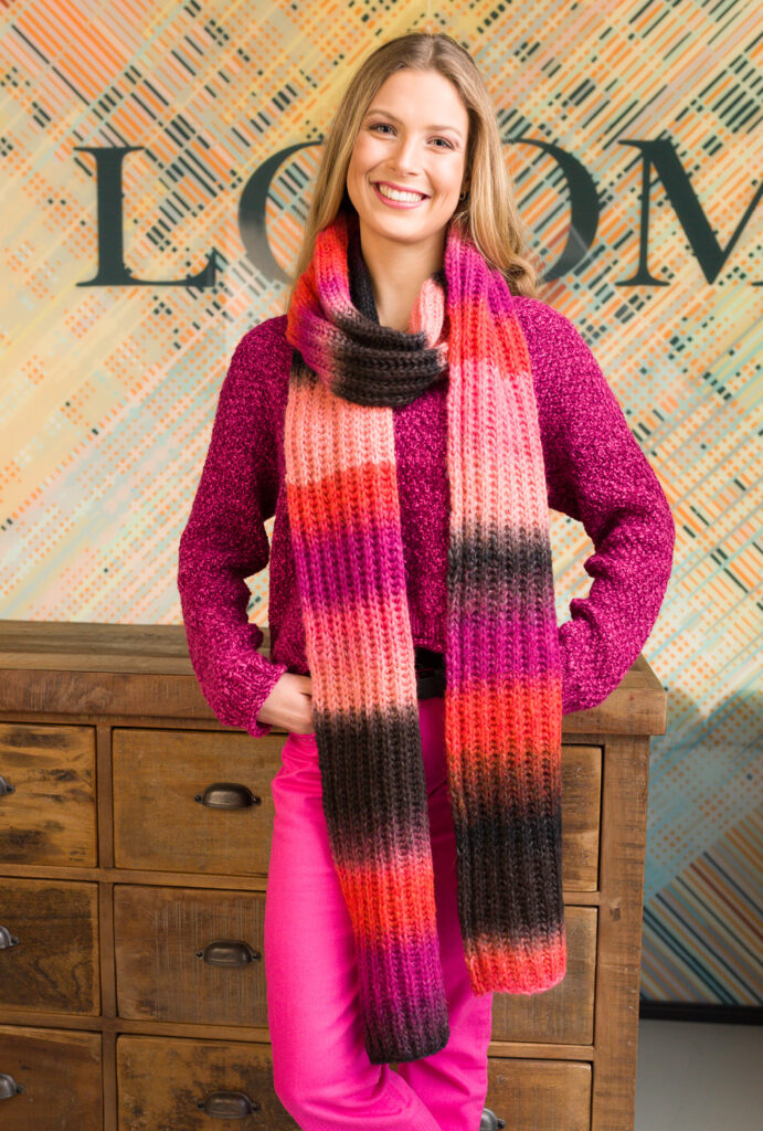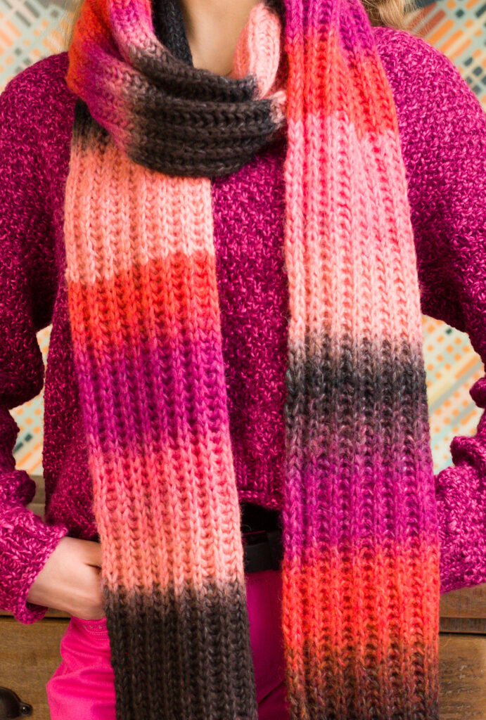 Dieser lange XXL-Schal bringt das Farbspektrum und die harmonisch gestalteten, fein nuancierten Übergänge des Effektgarns optimal zur Geltung und lässt durch diese spezielle Farbgebung viele Kombinationsmöglichkeiten offen für farblich passende Kleidungsstücke. In Vollpatent gestrickt, kommt man dank Stricknadeln Nr. 6 dennoch flott voran beim Stricken. Die Länge dieses voluminösen Schals erlaubt es, ihn mehrmals um den Hals zu schlingen. Die Anleitung dazu steht für die Größe 22 x 200 cm zur Verfügung.