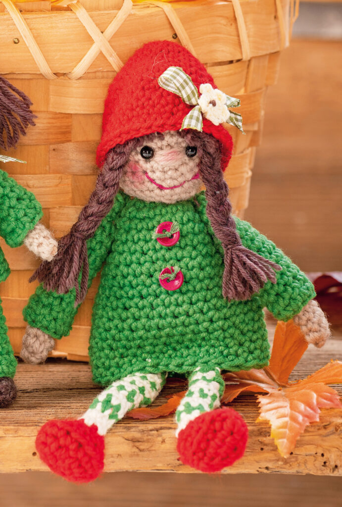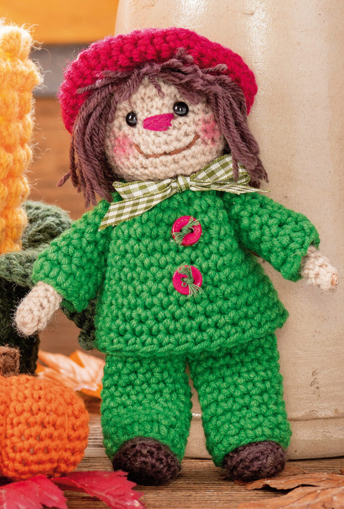 Anna Handarbeiten Gehäkelte Herbstdeko mit Erntekranz, Wichtelmädchen und Vogelscheuche