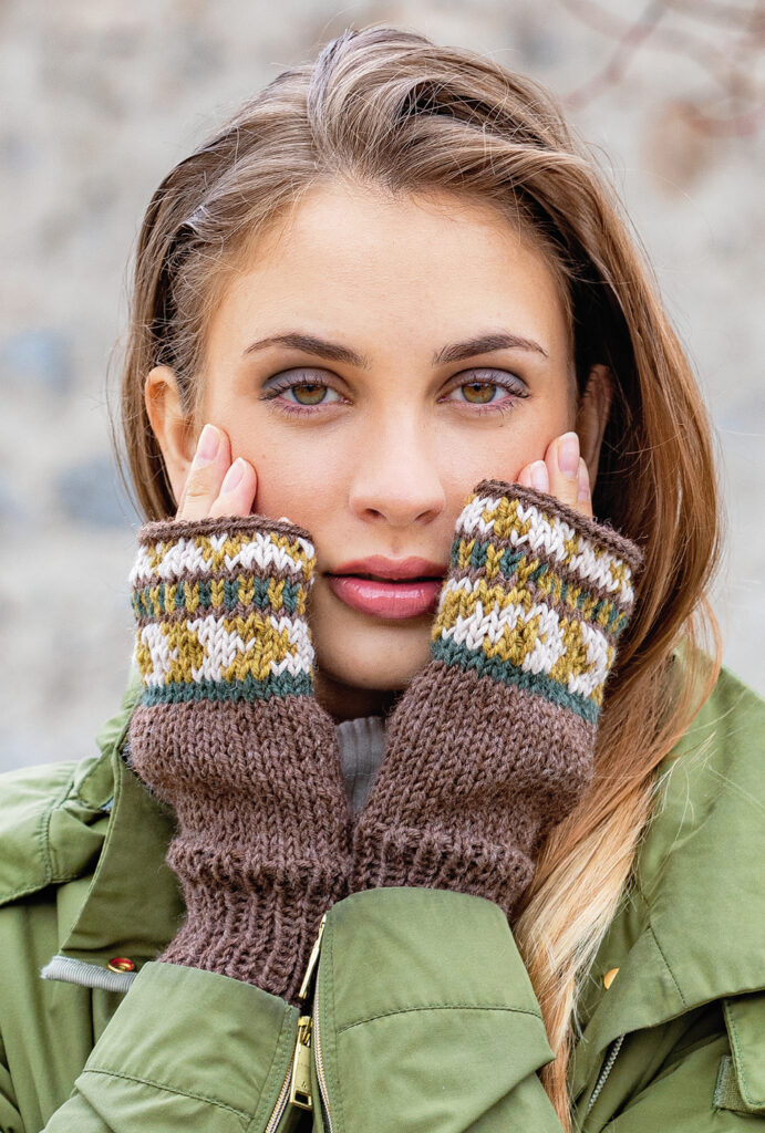 Beim Fair-Isle-Stricken wird traditionell glatt rechts in Runden gestrickt. Es werden mehrere Farben verwendet, allerdings dürfen in einer Runde maximal zwei Farben verwendet werden, wobei jede Runde ein anderes Muster haben muss. Das Jacquardmuster für diese hübschen Handschuhe in vier perfekt aufeinander abgestimmten Farben ist in der Norweger-Technik gestrickt. Dank der ausführlichen Strickanleitung inklusive Zählmuster ist das Nacharbeiten auch für etwas ungeübtere Strickerinnen kein Problem.