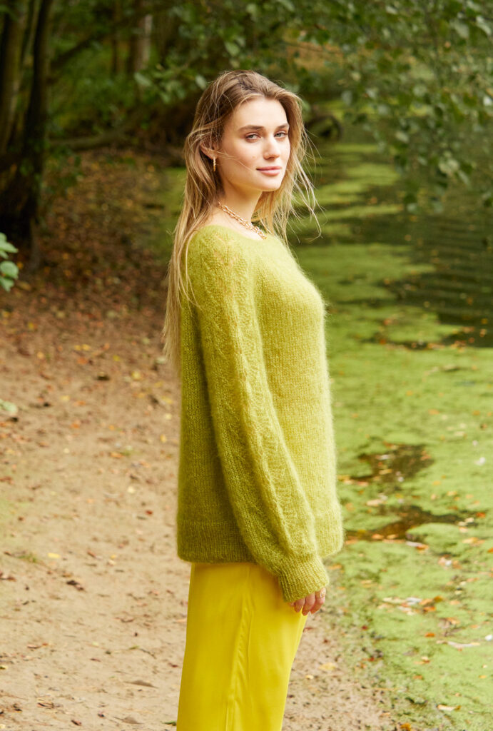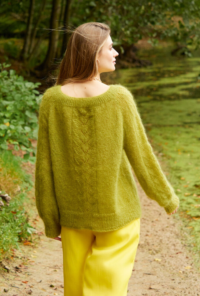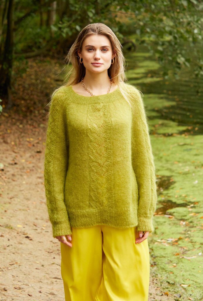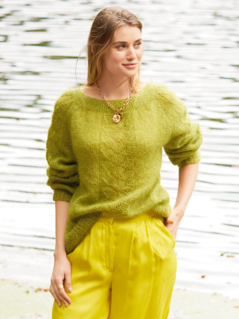 Sabrina Strickjournal Grüner Raglanpulli mit Ajourmusterbordüre