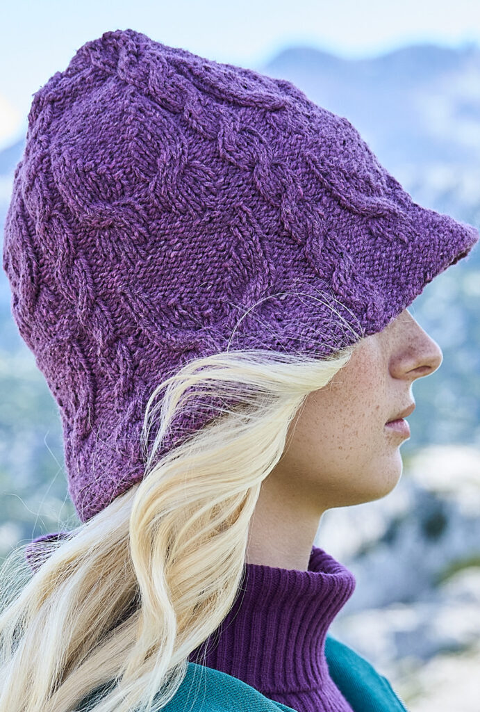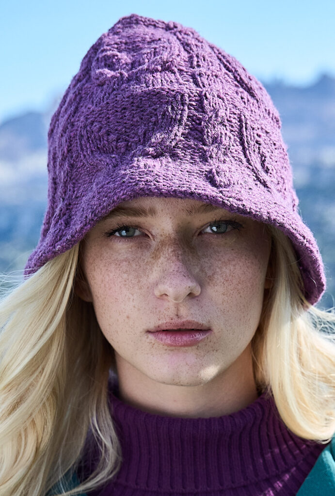 Bucket-Hats mischen gehabte Styles wohltuend auf und verbreiten modischen Charme. Bei dem lavendelfarbenen Hut kommen tolle Zopfstrukturen ins Maschenspiel, die mit vier kurzen Nadeln in Runden entstehen. Du fängst oben in der Kopfmitte mit einem Fadenring an und nimmst dann bis zur Krempe die in der Anleitung angegebenen Maschen mustergemäß zu. Den sauberem Abschluss bildet ein I-Cord, der durch rechte Maschen mit zwei Nadeln entsteht.
