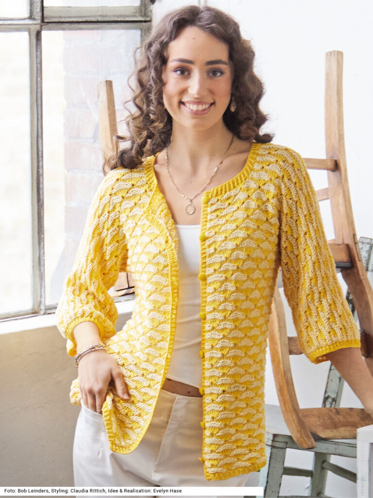 Sabrina Strickjournal Jacke mit tiefgestochenen Maschen