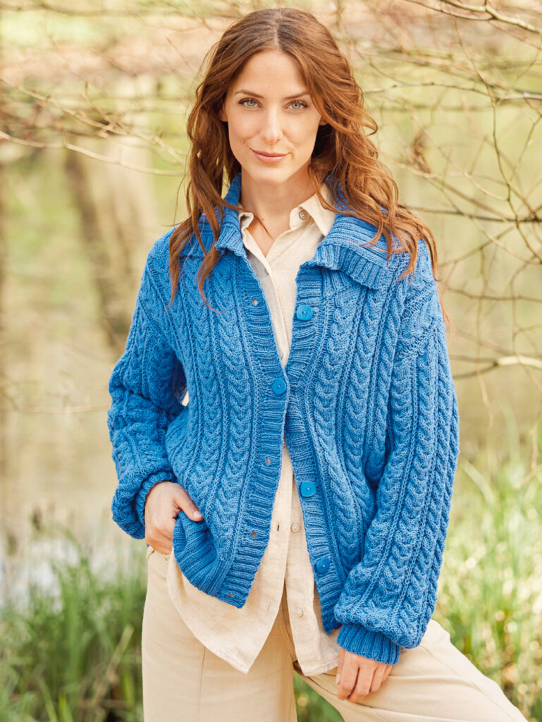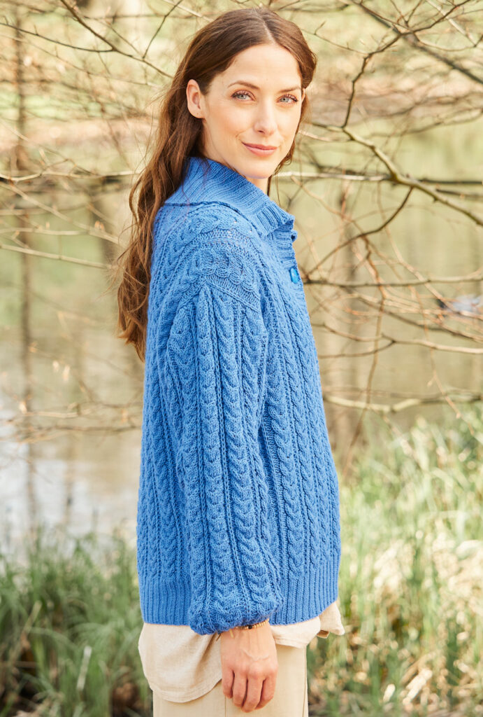 Plakative Zöpfe treffen auf klassischen Schnitt – und fertig ist der perfekte Herbstbegleiter. Diese kurz geschnittene Jacke wird in einzelnen Teilen von unten nach oben gearbeitet und bietet mit dem All-Over-Muster richtig viel Strickspaß für Zopfliebhaber. Der praktische und kuschelige Kragen wird zum Schluss angestrickt. Nun fehlen nur noch die Knopfleisten inkl Knöpfe und schon kann der Herbst so richtig losgehen. Perfekt für Größe 38/40 und 46/48. Gestrickt wird mit Nadelstärke 4 mit einem kuscheligen und robusten Wollgarn von Austermann. Nach dem Download der Anleitung kannst du auch schon direkt losstricken.