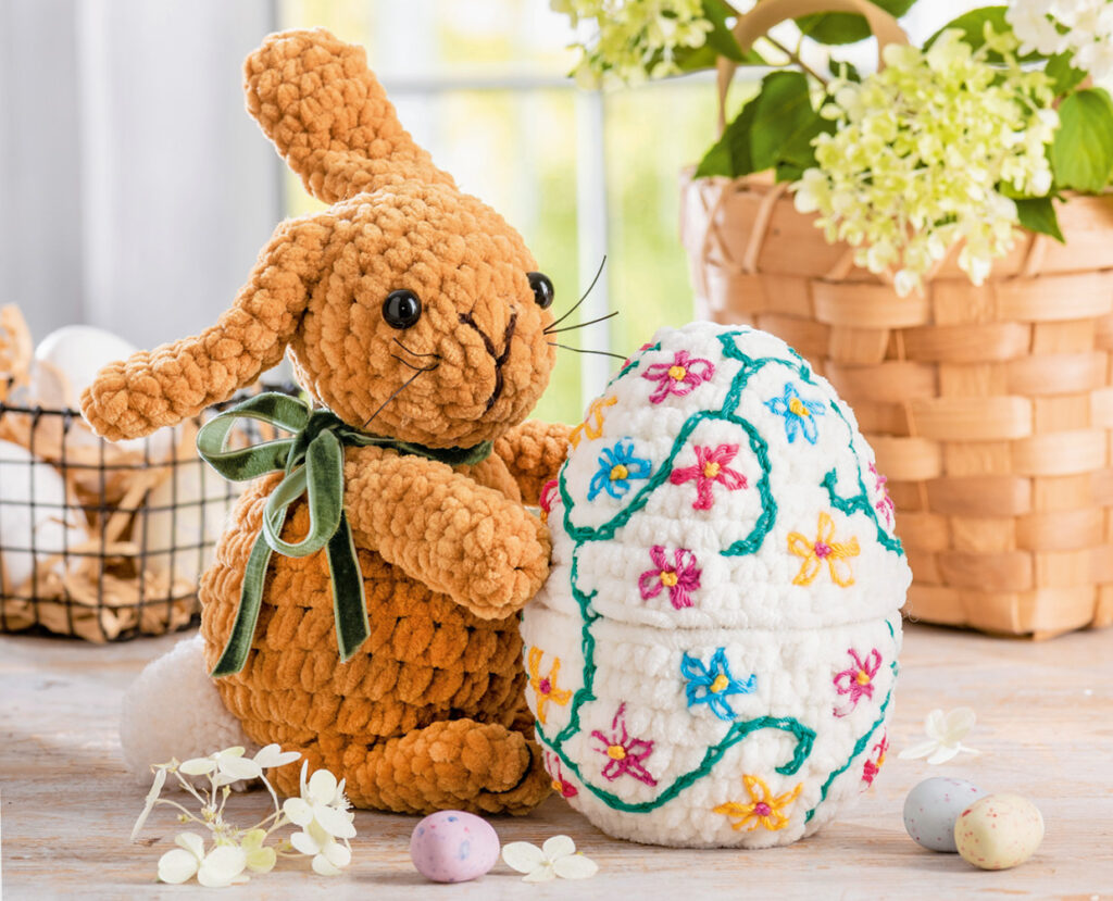 Bald ist Ostern! Da wird es Zeit, für die passende Dekoration zu sorgen. Dieser süße Hase, ca 25 cm hoch und das XL-Osterei (ca 14 cm hoch) entstehen aus kuschelweicher Chenillewolle von Katia, beide Modelle werden gehäkelt, nach einem einfachen Muster. Dank der ausführlichen Anleitungen schaffen das auch ungeübtere Häklerinnen problemlos.