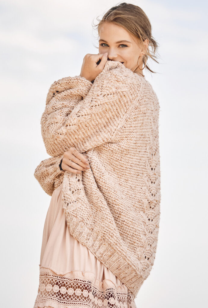 Harmonisch und entspannden: So wirkt diese tolle verschlusslose Jacke auf den Betrachter. Die lässige Oversize-Form und der gerade Schnitt machen das Nacharbeiten zum Kinderspiel. Das aparte Ajourmuster ist dank der detaillierten Strickschrift in der Anleitung auch überhaupt kein Problem. Den perfekten Sitz der Jacke erreicht man durch die Raglanschrägungen an den Ärmeln. Auch diese Technik ist in der Anleitung perfekt erklärt. Dazu kommt noch ein genauer Schnitt und die Erläuterung aller verwendeten Muster und schon kann es los gehen. Fehlen eigentlich nur noch deine Stricknadeln in Größe 5 und 6 sowie das tolle Garn von AUSTERMANN für perfektes Srickvergnügen.