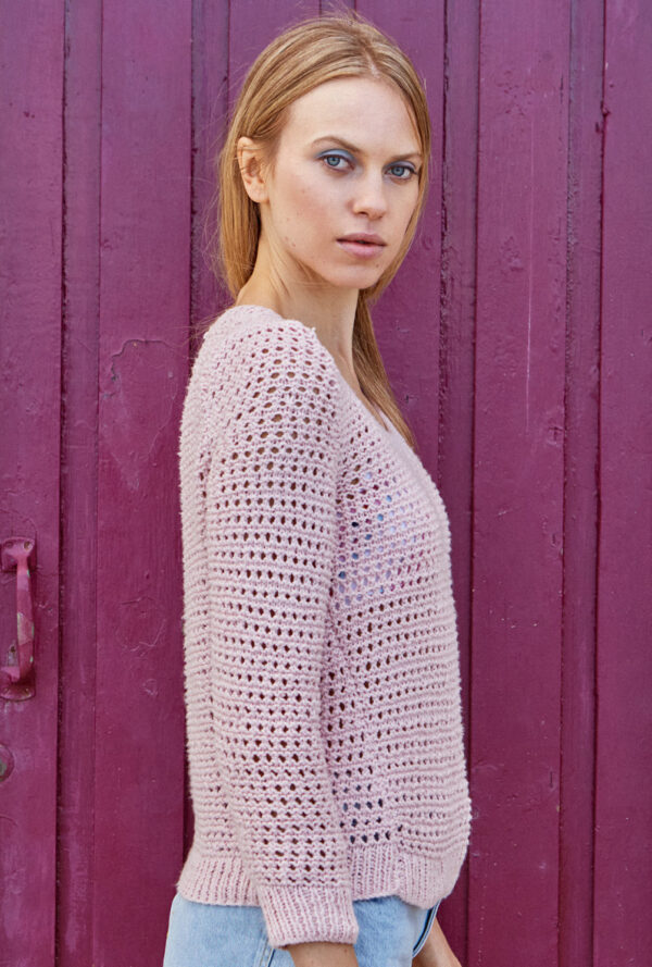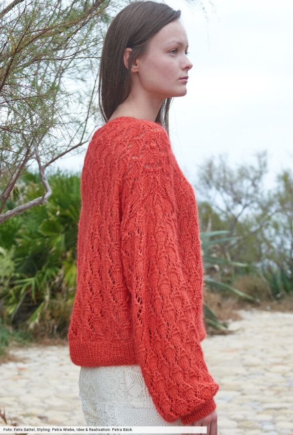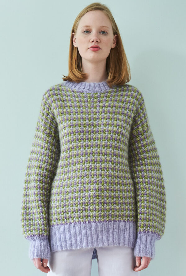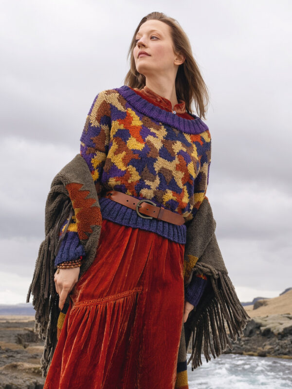 Von Eiskristallen inspiriert und aus hochwertigem Schurwoll-Alpaka-Garn umgesetzt: Dieser aparte, glatt rechts gestrickte Norwegerpulli ist wie gemacht für mondäne Wintertage und romantische Nächte am Kamin. Für die Passe gibt es ein Zählmuster, bei dem du darauf achten muss, dass du den unbenutzten Faden möglcihst locker auf der Rückseite der Arbeit mitführst. Unser Fazit: Mit der passenden Rippenmütze entsteht ein Look, der alpine Klarheit mit urbaner Eleganz verbindet.