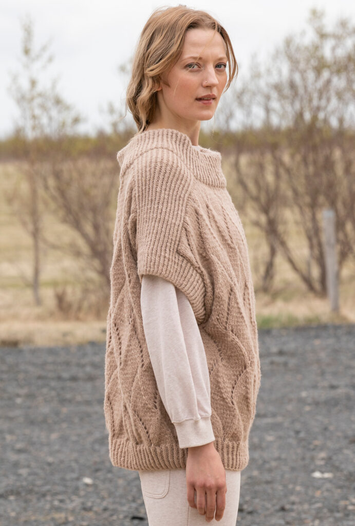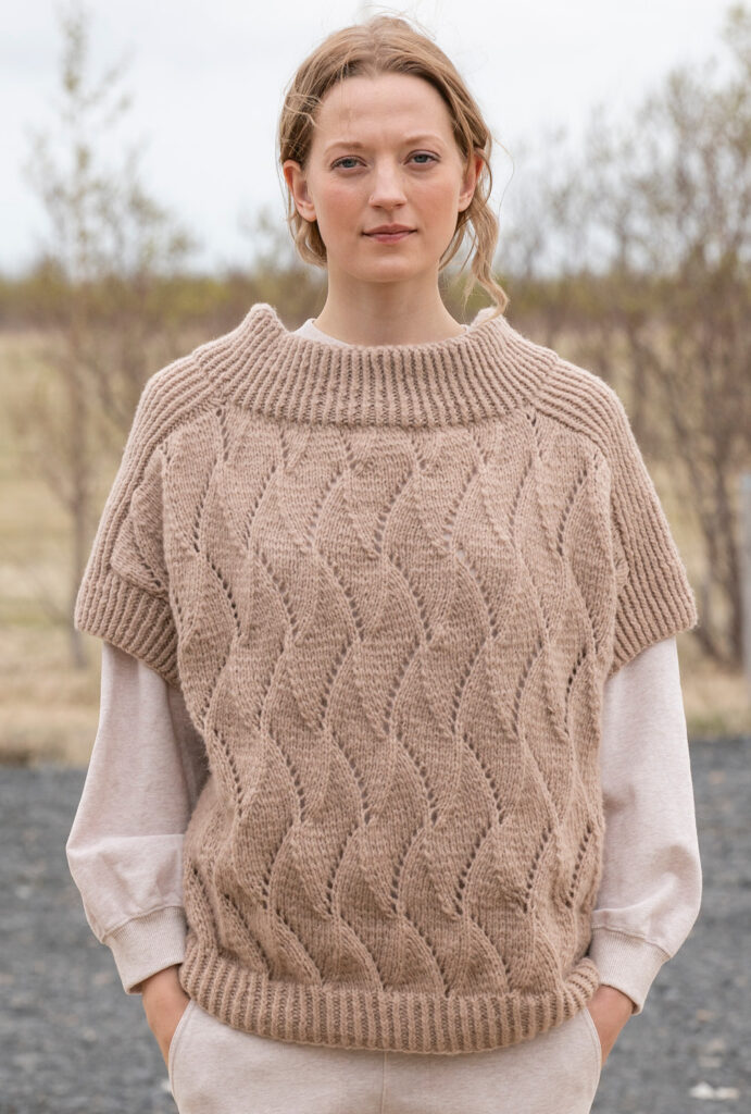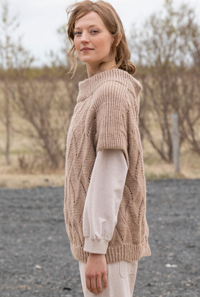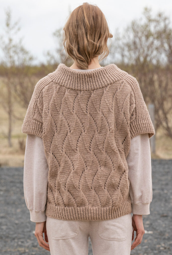Friends forever: Lässige Pullunder waren schon in der Frühlingssaison absolute Bestseller und machen jetzt auch im Herbst Furore. Hier ein Modell in gemütlicher Oversizeform aus einem Schurwollgarn, das durch seinen Polyester-Anteil einen ganz dezenten Glanzeffekt aufweist. Dadurch bekommen die Ajourstrukturen die besondere Haptik und einen cleanen Look. Zusätzliche Spannung erzeugt die Kombination mit elastischen Rippen, die als Blenden, Schulterpasse und Stehkragen zum Einsatz kommen.