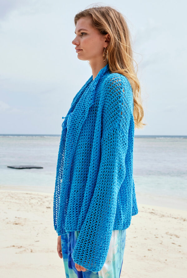 Entdecke den zeitlosen Charme unserer türkisfarbenen Strickjacke im Ajourmuster. Fein gestrickt aus hochwertigem Seidengarn verleiht sie jedem Outfit eine subtile Eleganz. Das filigrane Ajourmuster verleiht dieser Jacke eine luftige Leichtigkeit, perfekt für warme Sommertage. Kombiniere sie lässig zu weißen Hosen für einen entspannten, aber dennoch stilvollen Look. Ein vielseitiges Kleidungsstück, das in jedem Kleiderschrank seinen Platz findet.