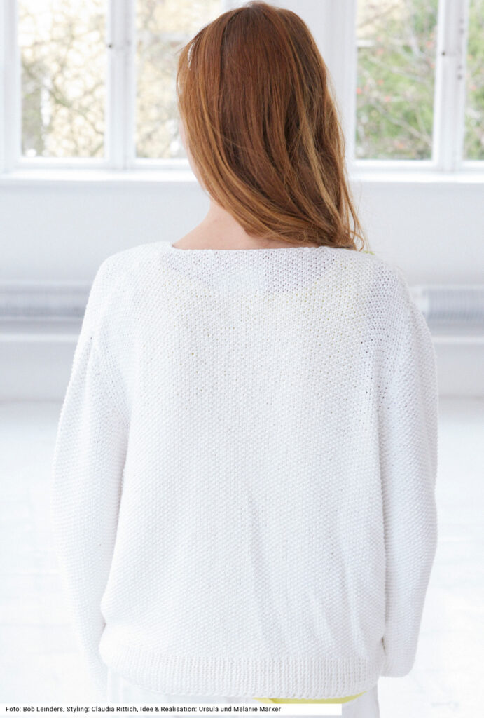 Diese ansich schlichte Wickeljacke mit kleinem Perlmuster bekommt dank der aufgestickten Sterne das gewisse Etwas. Mit zwei I-Cord-Schnüren wird die Jacke geschlossen. Die Ärmel sind weit und ganz gerade geschnitten und haben eine Armkugel, sodass sie sich gut in den Armausschnitt einpassen. Die Bündchen sind im 1/1-Rippenmuster gearbeitet; eine Blende an den Vorderteilen erübrigt sich, da die doppelte Randmasche einen sauberen Abschluss erzeugt. Gestrickt wird mit einem weichen, anschmiegsamen Garn aus Baumwolle mit etwas Polyamid. Eine Anleitung gibt es für die Größen 38/40, 42/44 und 46/48.