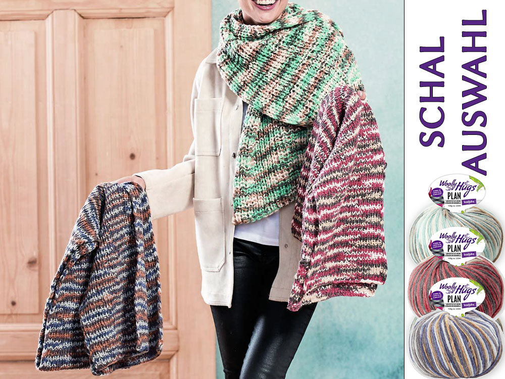 So unterschiedlich können Schals mit verschiedenen Farben und Mustern wirken. Mit diesen einfachen Mustern seht Ihr, wie toll die Qualität PLAN auch ohne Planned Pooling farblich zur Geltung kommt und man sich mit nur 200 g Wolle einen trendigen Schal stricken kann. Die Woolly Hugs PLAN ist aus fantastisch weichem Merino, Polyamid und Baumwolle. Das macht Eure Werke nicht nur weich und kuschelig, sondern auch Pflegeleicht. Diese Schals sind absolut Anfänger egeignet.
