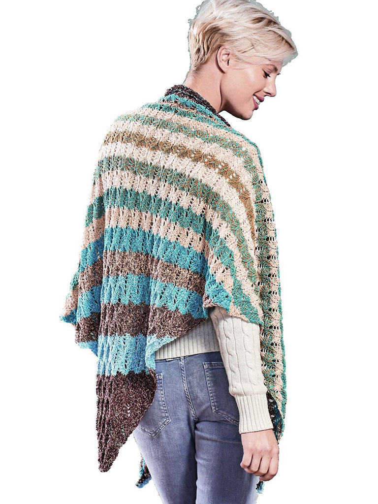 Dieses herrlich schöne Tuch wird von der Spitze aus gestrickt und beidseitig zugenommen. Dadurch entsteht ein Tuch mit einer langen Spitze die herrlich das Dekoltee wärmt. Durch das luftige Muster wird das Tuch mit nur einem Bobbel schön groß. Das Muster ist leicht zu erlernen und strickt sich fast von selbst. Eine Strickschrift ist selbstverständlich in der Anleitung enthalten. Die modernen Blockstreifen entstehen durch den besonderen Bobbel aus der Woolly Hugs Reihe Butterfly in den Farben Beige bis Braun und Grün bis Blau von selbst. Den Bobbel Butterfy gibt es noch in anderen sehr schönen Farben.