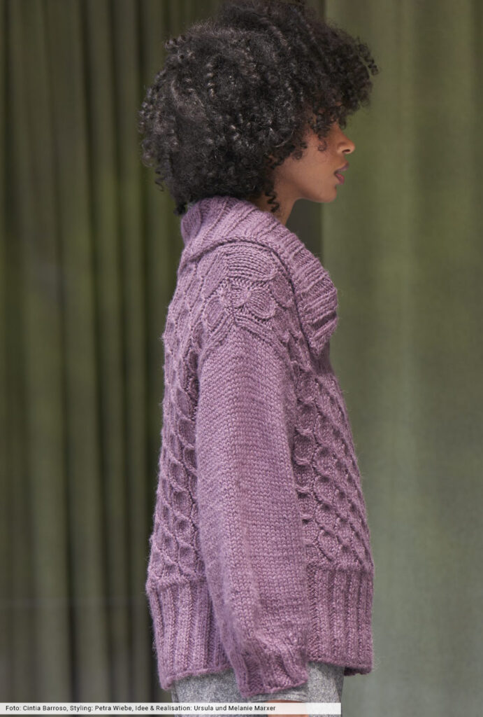 Verena Stricktrends Zopfmuster-Pulli mit großen Kragen