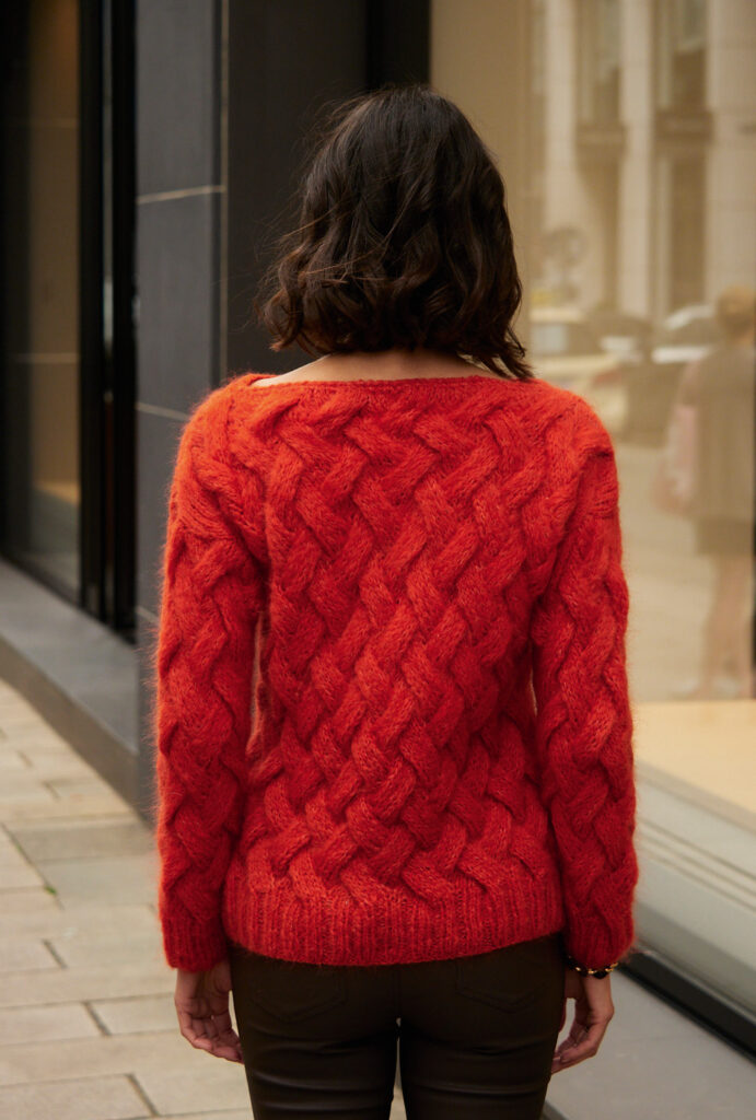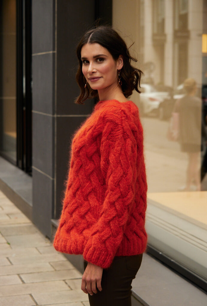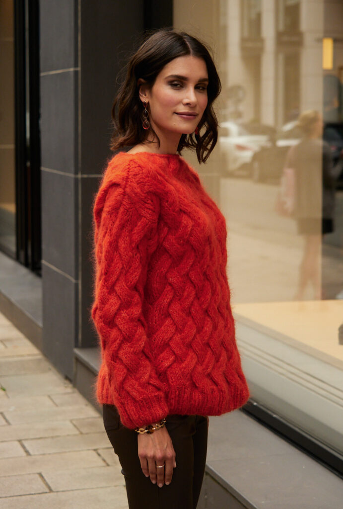 Dieser bequem geschnittene Pulli mit Allover-Zopfmuster wird die Herzen von versierten StrickerInnen höher schlagen lassen – denn Langeweile kommt hier beim Stricken nie auf. Nach der genauen Strickschrift ist das aber gut zu schaffen. Bei so prägnantem Muster braucht es keine besondere Raffinesse bei der Schnittführung. Der U-Boot-Ausschnitt wird am Ende mit je 1 Runde fester Maschen und Krebsmaschen umhäkelt. Alle Bündchen sind in 2/2-Rippen gearbeitet. Flauschiges Alpaka-Synthetik-Mischgarn hält zudem schön warm. Die Anleitung hierfür gibt es in den Größen 38/40, 46/48 und 52/54.