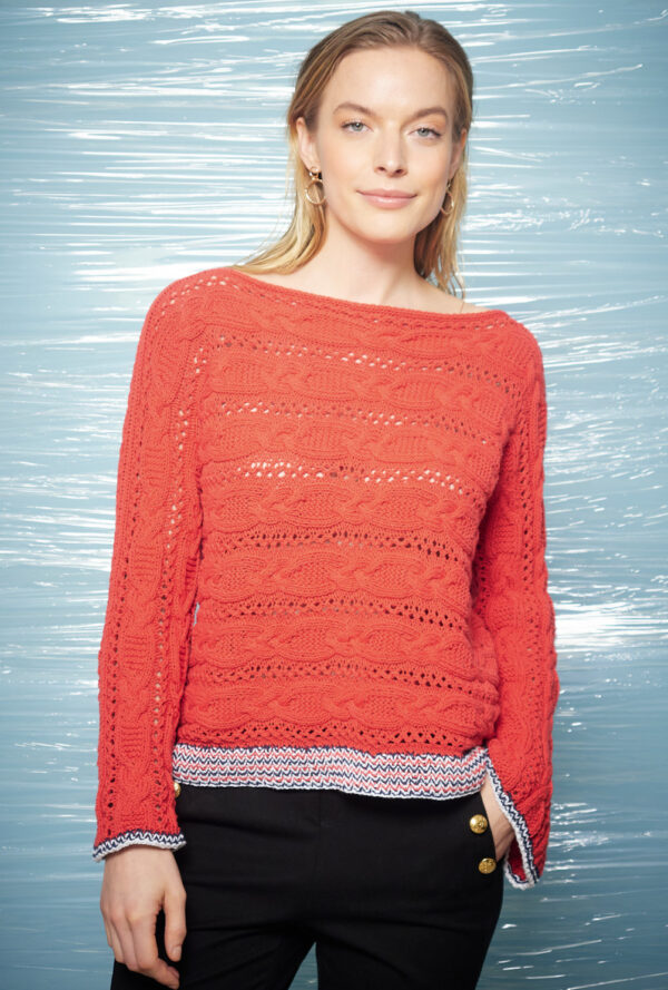 Zopfmusterpulli in Orange