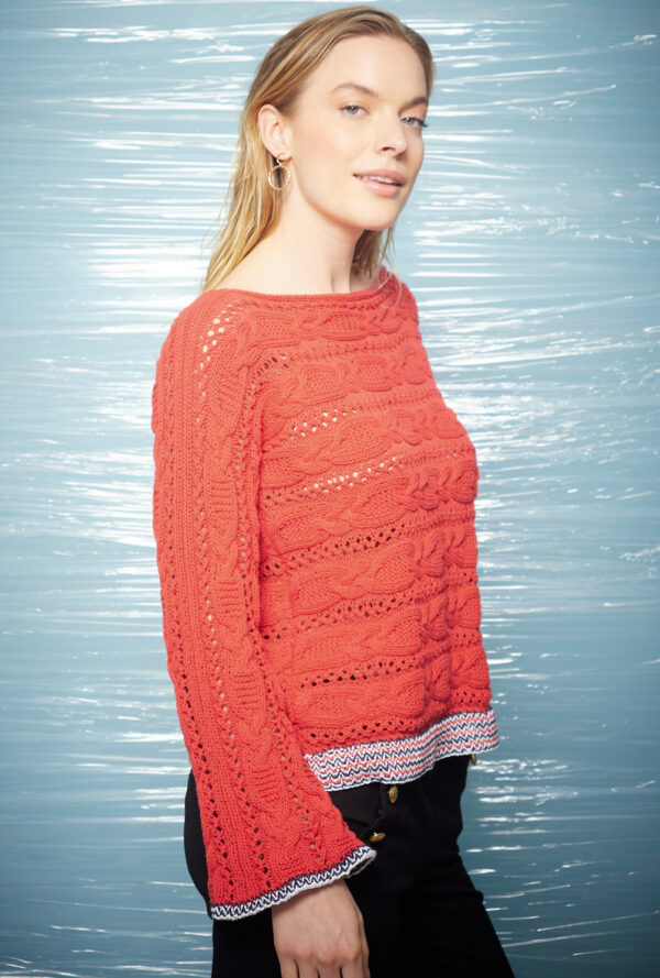 Pulli im Zopf-Lochmuster mit Kordelzug