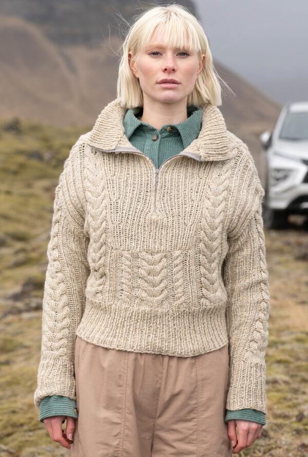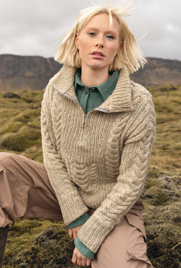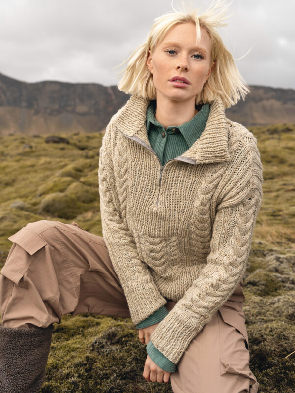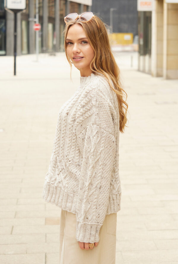 Beiger Pulli im Aranmuster
