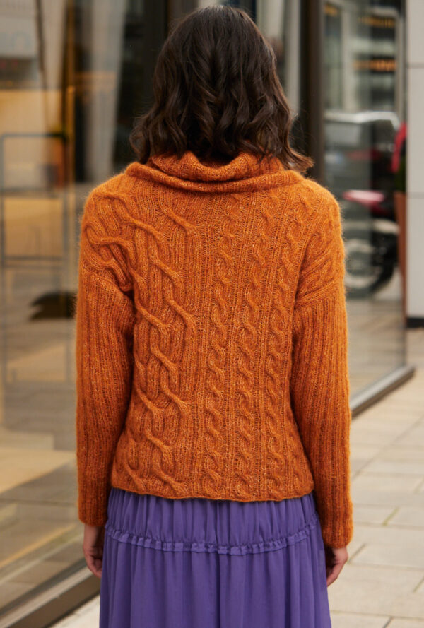 Pulli mit Zopfmuster und Schalkragen in Orange