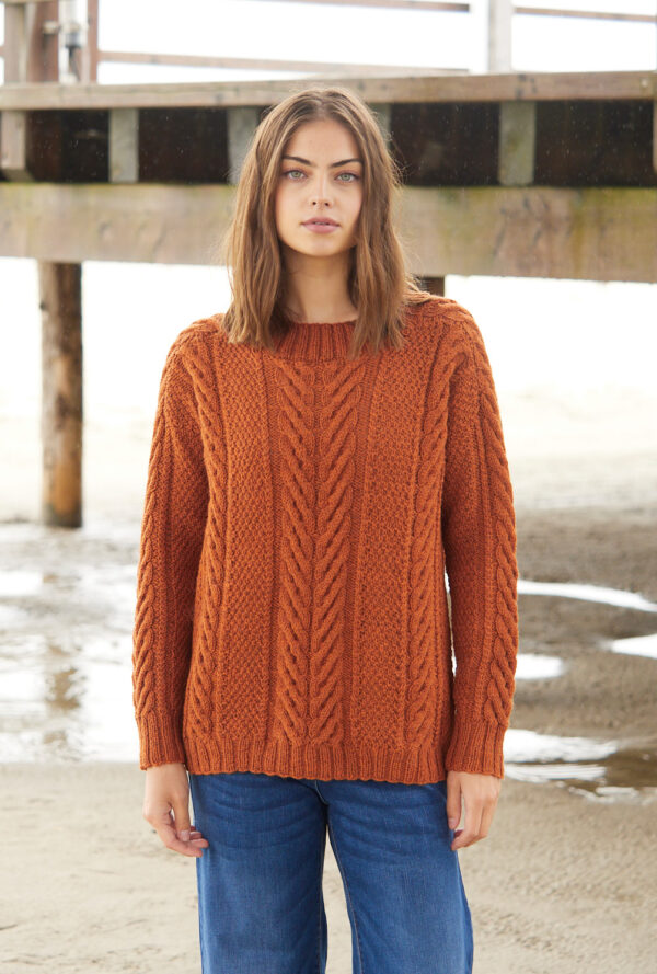 Pulli mit Zopfmuster in Terraorange