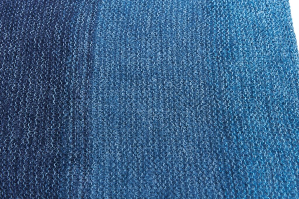 1. Reihe: 1 Masche links, eine Masche rechts, wiederholen bis zum Ende der Reihe. Die 1. Reihe wiederholen, bis ca. 80% des Knäuels der Mohair Luxe verstrickt sind. Nun die nächste Farbe dazu nehmen und verblenden, wie in dem Artikel beschrieben. Hierfür immer einen Faden der Merino Lace mit einem Faden Mohair Silk gemeinsam verstricken. Für das Verblenden wird lediglich der Faden Mohair Lace gewechselt.